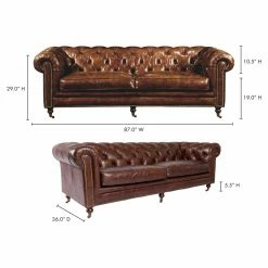 If you’re looking for a sofa that’s not just a gathering place but a statement piece, look no further than the Moe’s Home Collection Birmingham Sofa – Dark Brown. The opulent traditional shape of this sofa features rich details like button-tufting and nail-head trim. Rolled arms and a supple dark brown leather upholstery provide the ultimate in elegance.