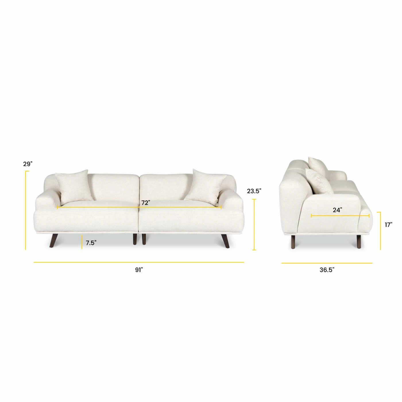 - Dimensions: 91W x 36.5D x 29H in.