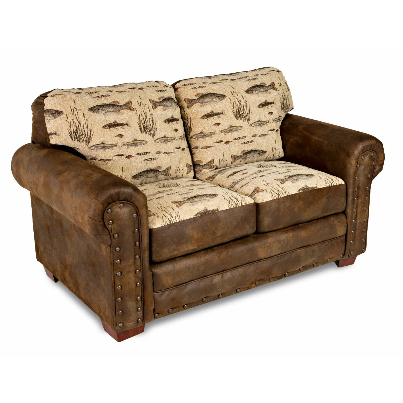 - Nail head accents bring a rustic look