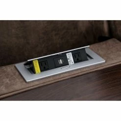 - Storage consoles with USB ports, electrical outlets, and cup holders