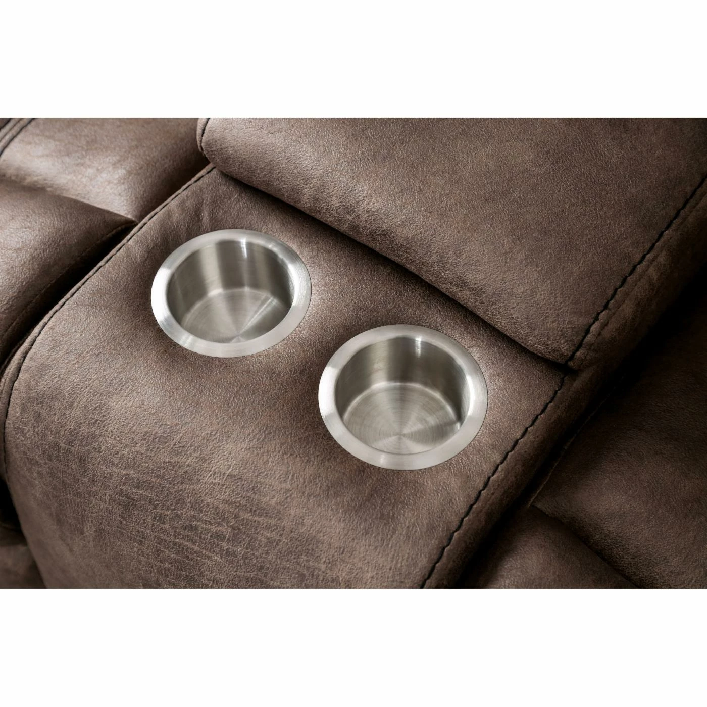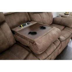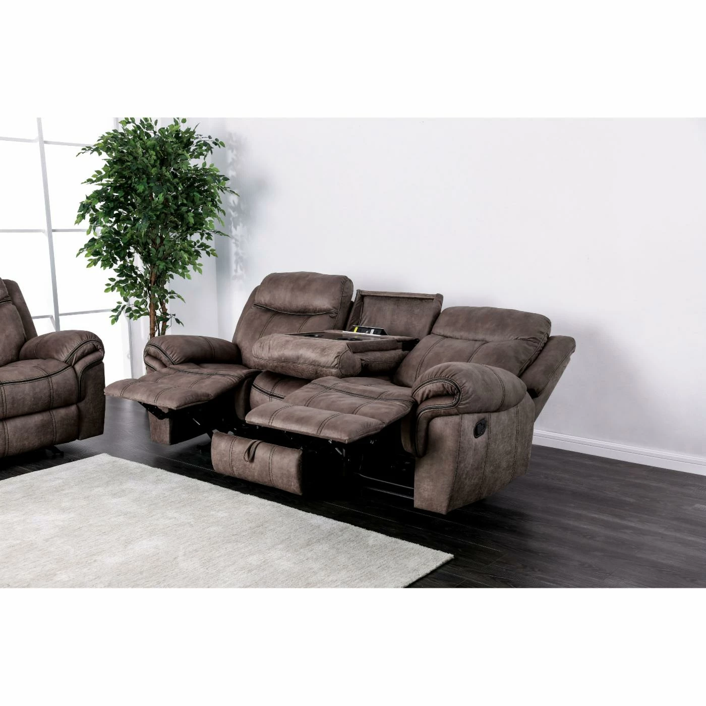 Brown leatherette upholstery and dense foam cushions make the Furniture of America Frankenbon 2 Piece Reclining Sofa Set with USB luxuriously comfortable. Storage consoles with USB ports, electrical outlets, and cup holders bring this sofa and its loveseat into modern times. Welted trim, accent stitching, and contoured seating add designer details to this sofa set.