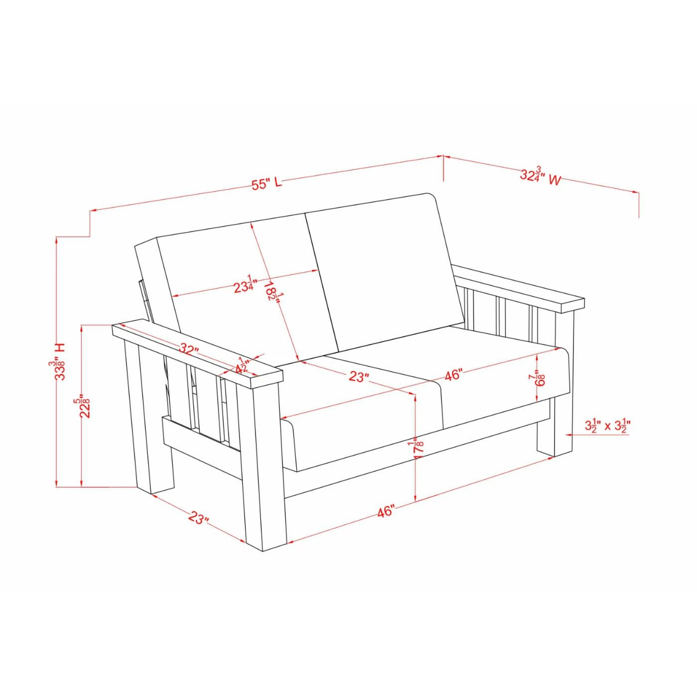 - Loveseat: 33 in H x 55 in W x 32.75 in D