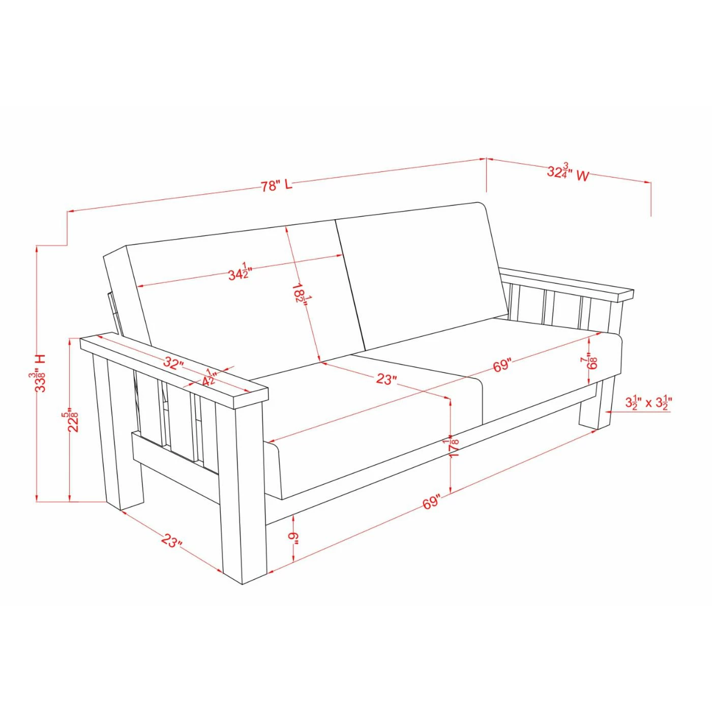 - Sofa: 33 in H x 78 in W x 32.75 in D