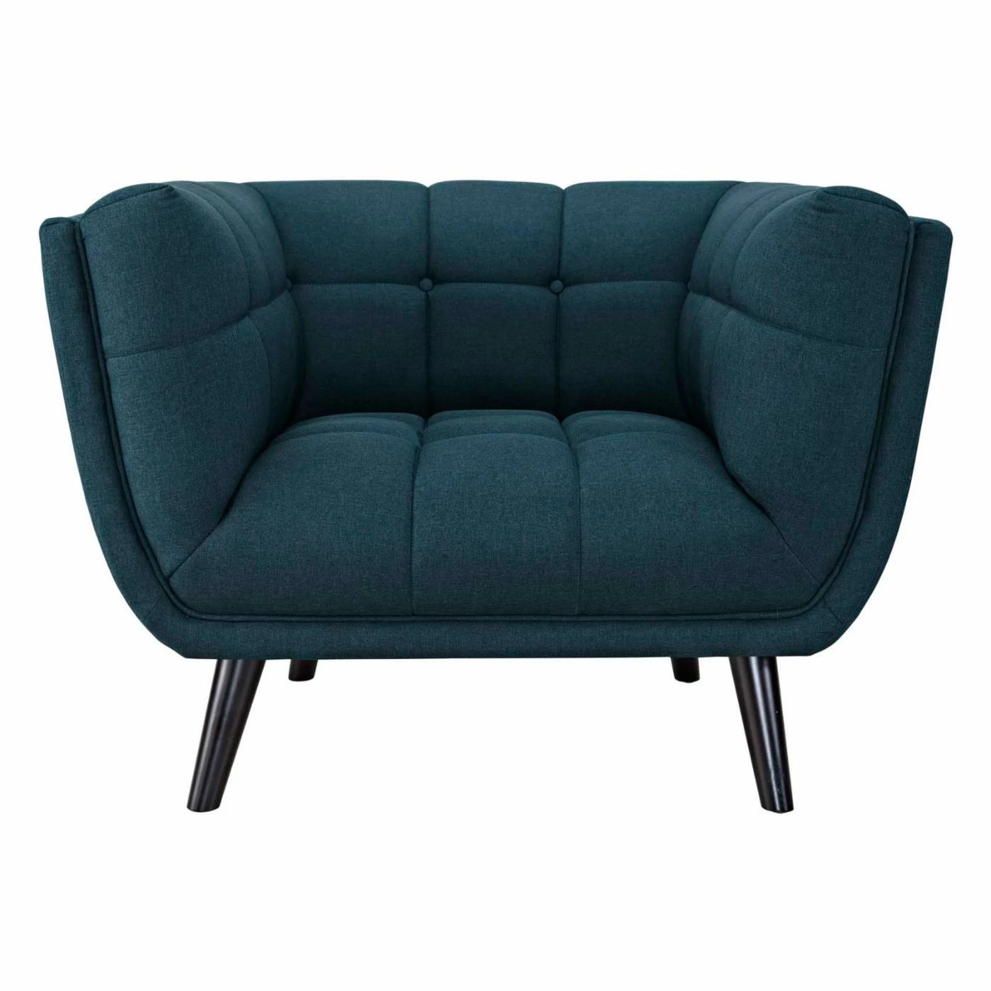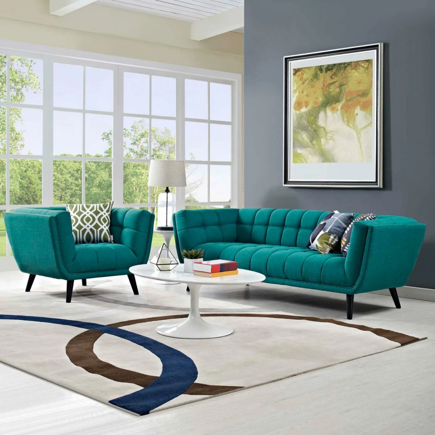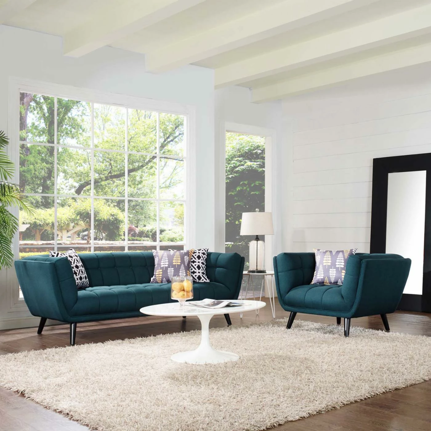 Showcasing clean, sleek lines and angled dowel legs, the Modway Bestow 2 Piece Fabric Sofa and Arm Chair Set makes a retro statement. The grid quilting on the fine polyester upholstery further enhances the mid-century modern appeal of the sofa and arm chair. Both pieces are durably crafted out of solid rubberwood and padded with plush, high-density foam.
