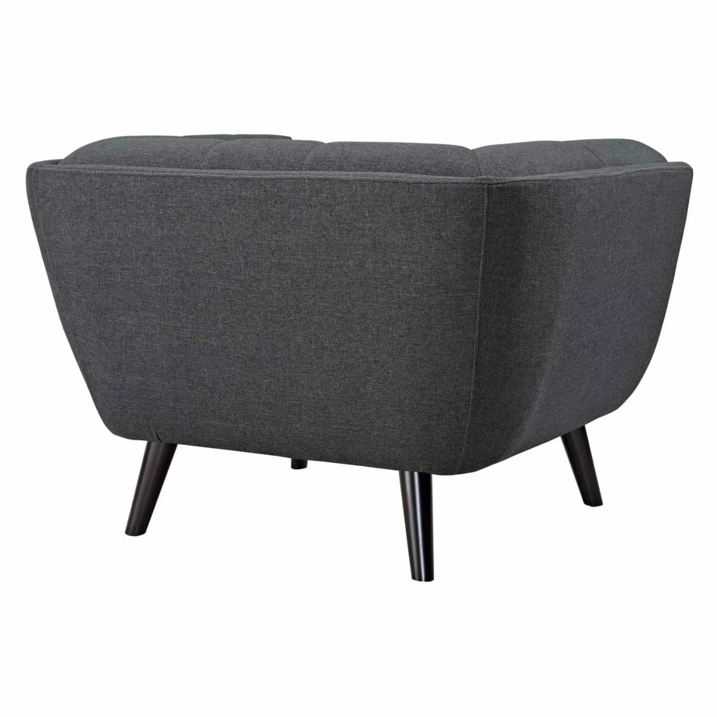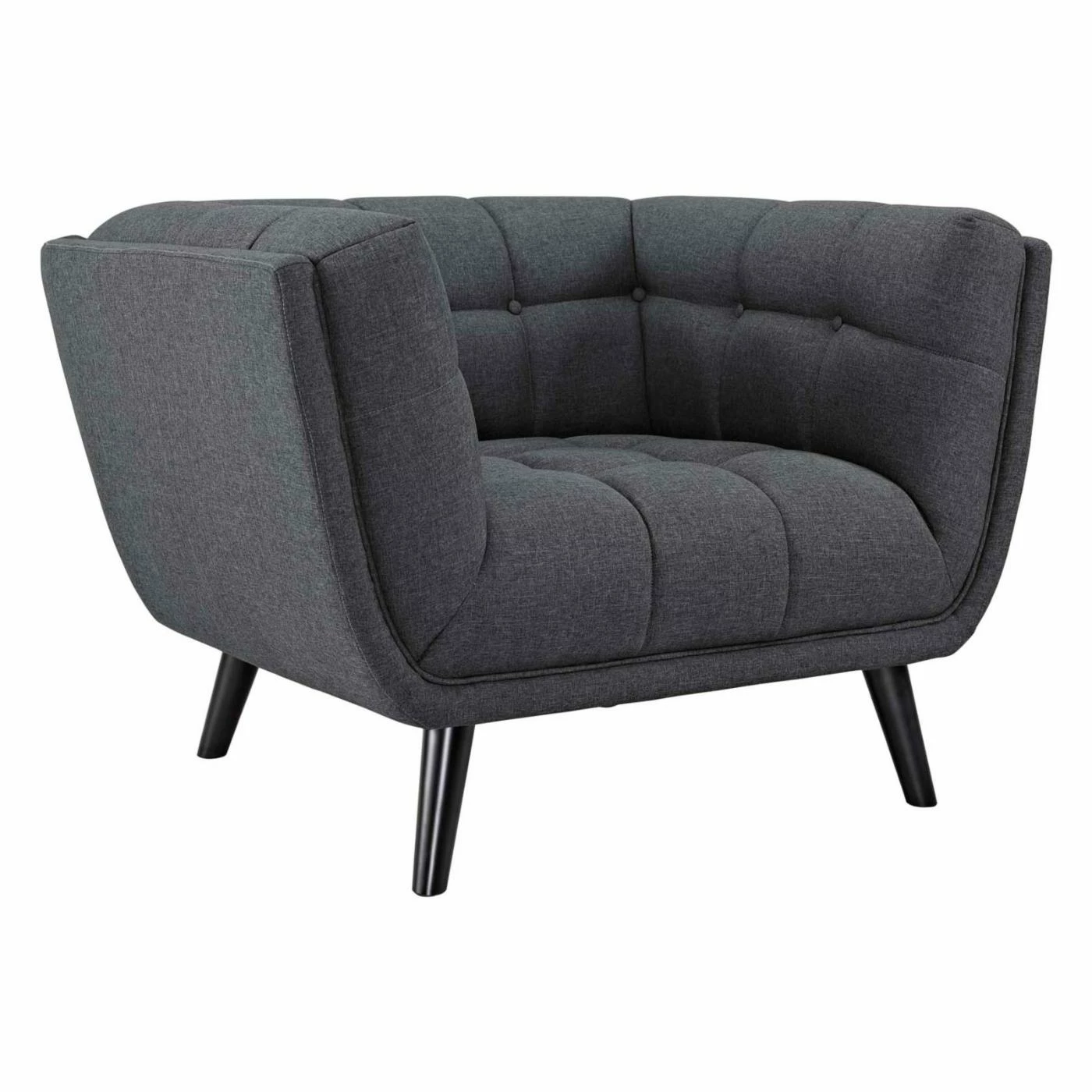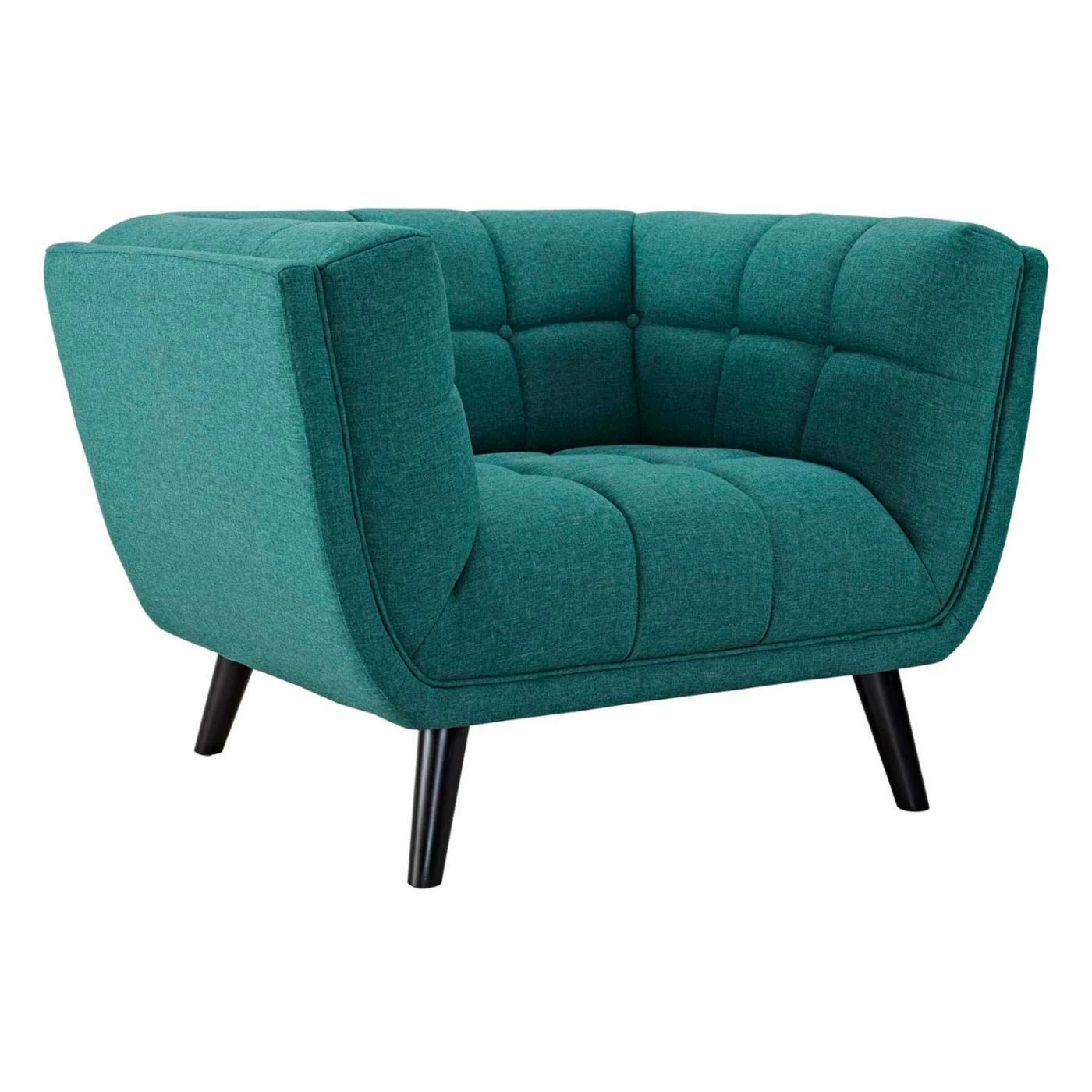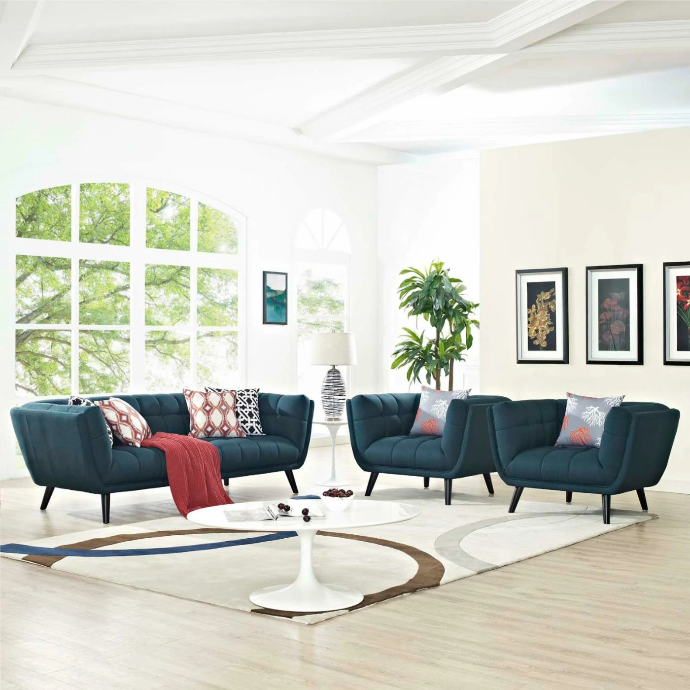 Carry a mid-century modern theme throughout your living space with the Modway Bestow 3 Piece Fabric Sofa and Arm Chair Set. The set includes two armchairs and a sofa with angled dowel legs and grid-quilted polyester upholstery. For lasting durability in your primary seating area, the frames are fabricated out of solid rubberwood. Plush, resilient, high-density foam fills the tight seat and back cushions.