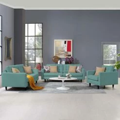 Transform the look and feel of your living space with the Modway Empress Sofa Loveseat and Armchair Set, featuring a sofa, loveseat, and armchair completed with comfortable plush cushions. This modern furniture set boasts button tufting that brings each piece a sense of contemporary sophistication. Fabric upholstery in your choice of available color allows you to create a seamless, cohesive look.