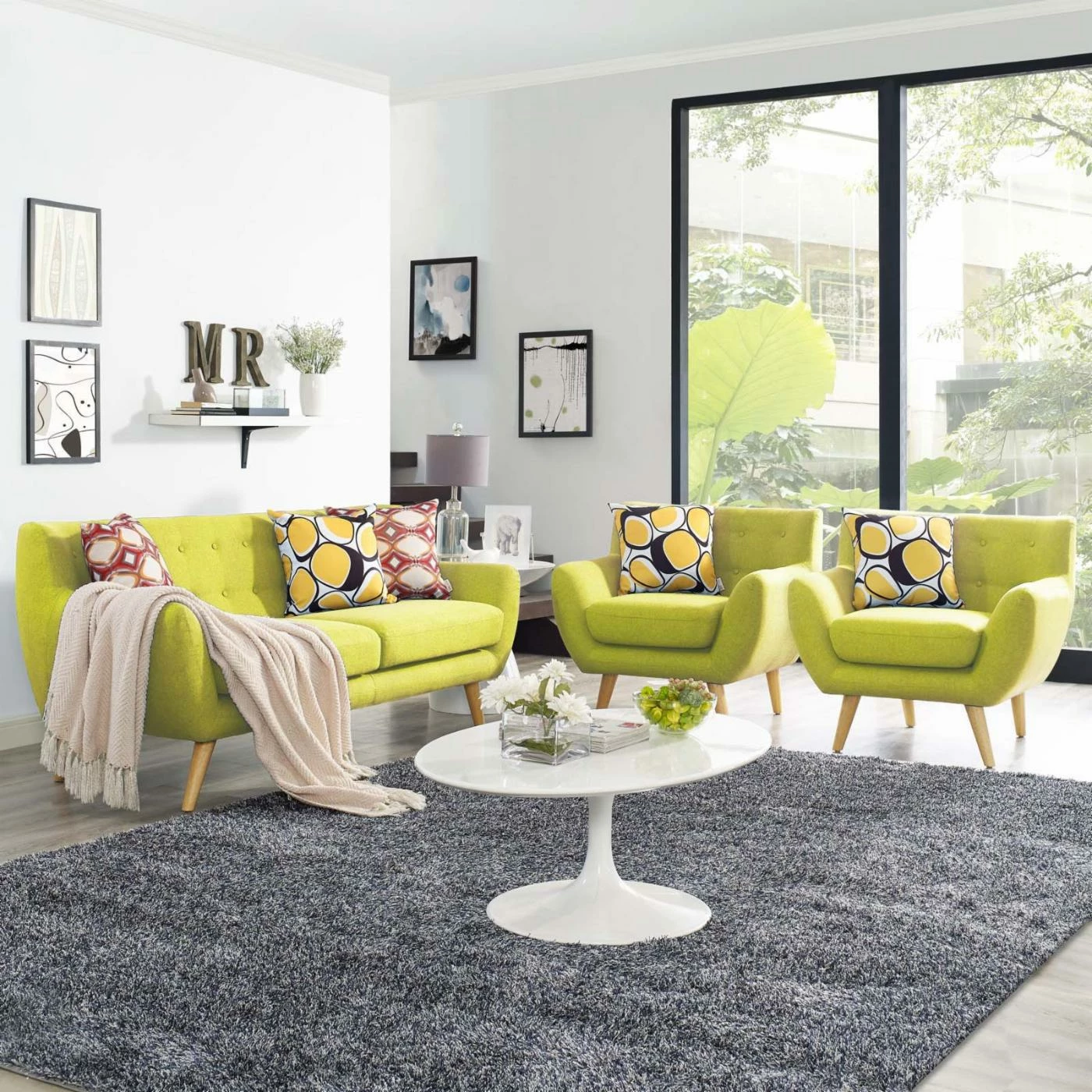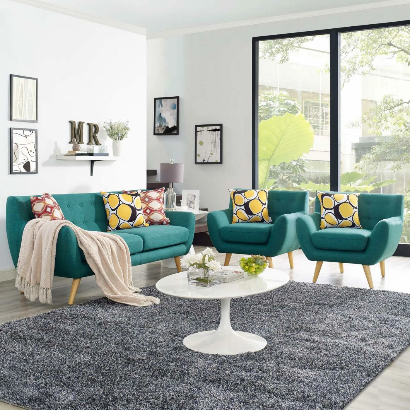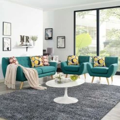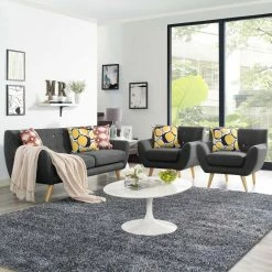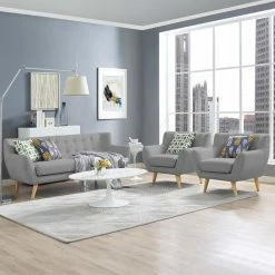 The Modway Remark 3 Piece Living Room Set will add laid-back, modern style to your home thanks to its sweeping profile and slender, tapered rubberwood legs. This comfortable living room set includes a roomy sofa and two armchairs enlivened with thick foam cushioning and button tufting. Select your preferred available color for the fabric upholstery to give your home a look that melds seamlessly with your decor.