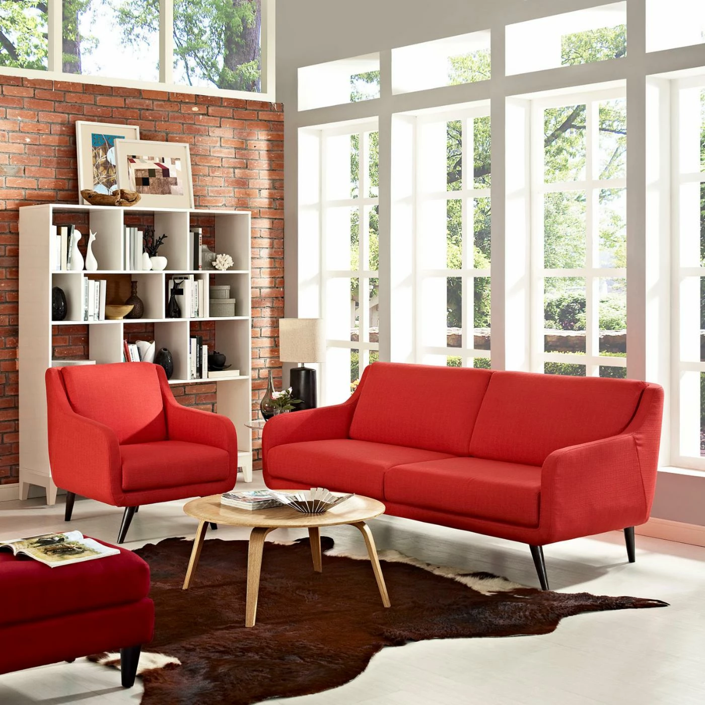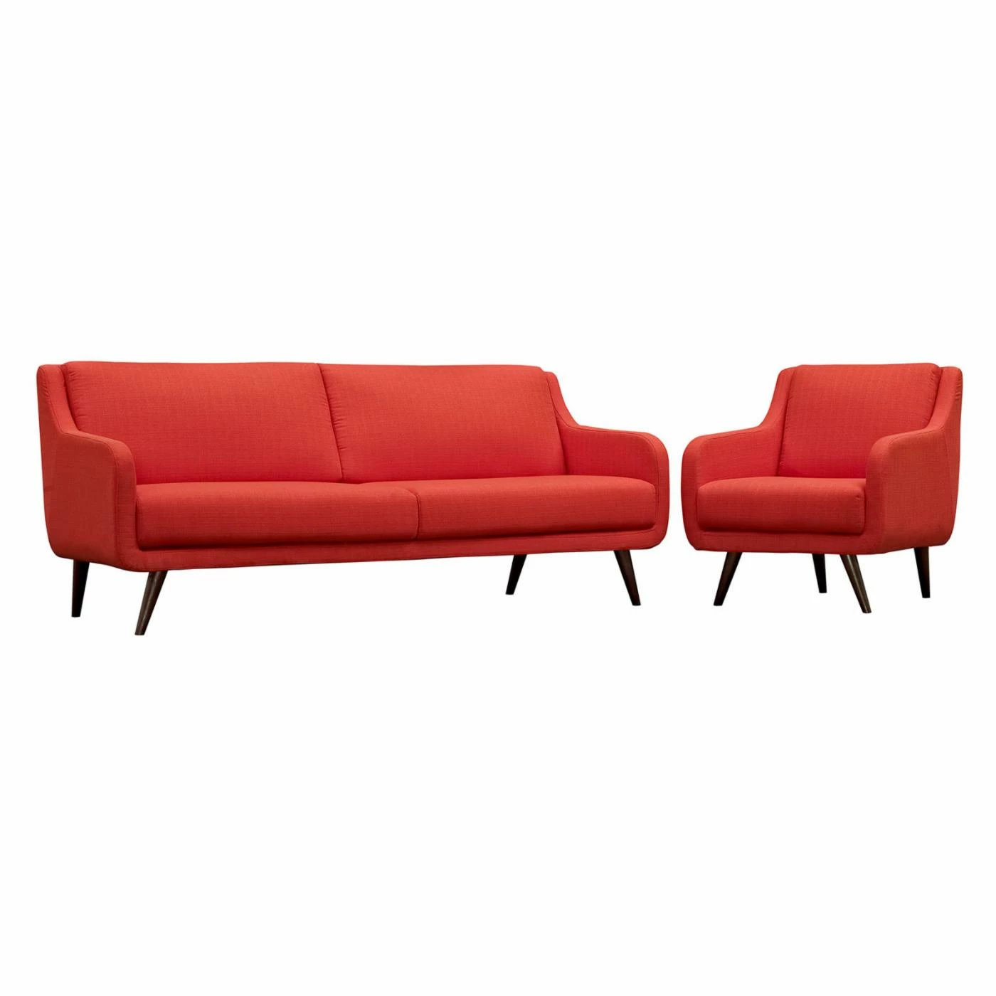 The Modway Verve 2 Piece Living Room Sofa Set exudes mid-century charm. This chic set boasts clean, straight lines that will complement minimalist or modern homes. Solidly crafted, each piece in this set features dense foam cushioning, wrapped in soft polyester fabric. The espresso-stained wood legs are capped with non-marking foot glides to protect floors from scuffs and marks.