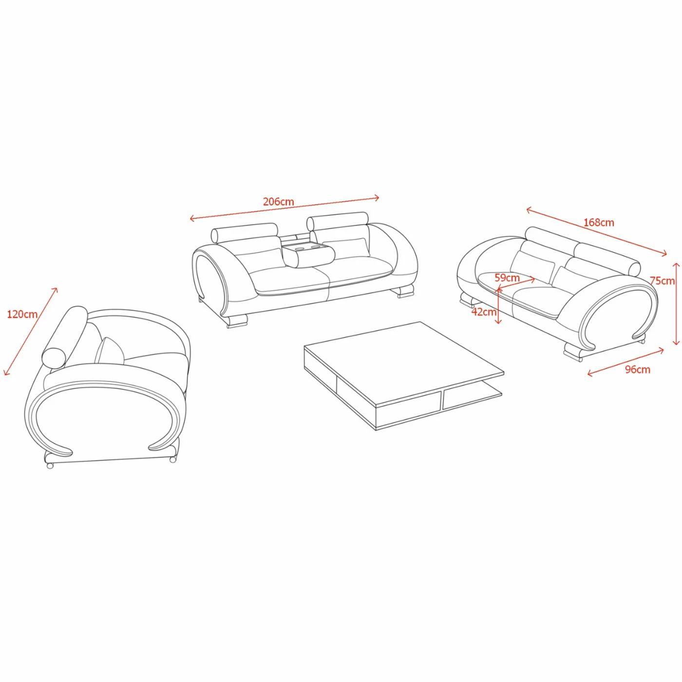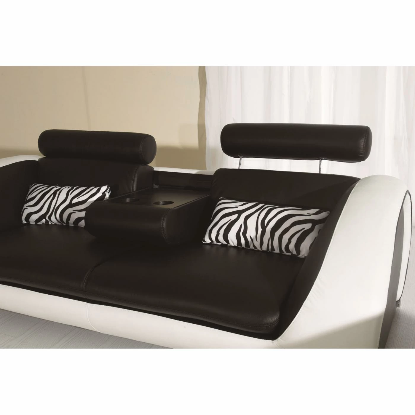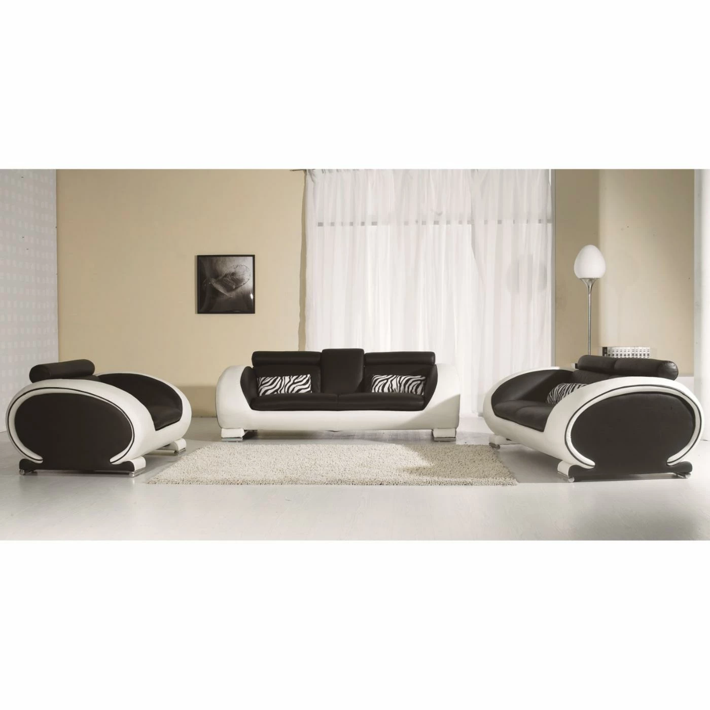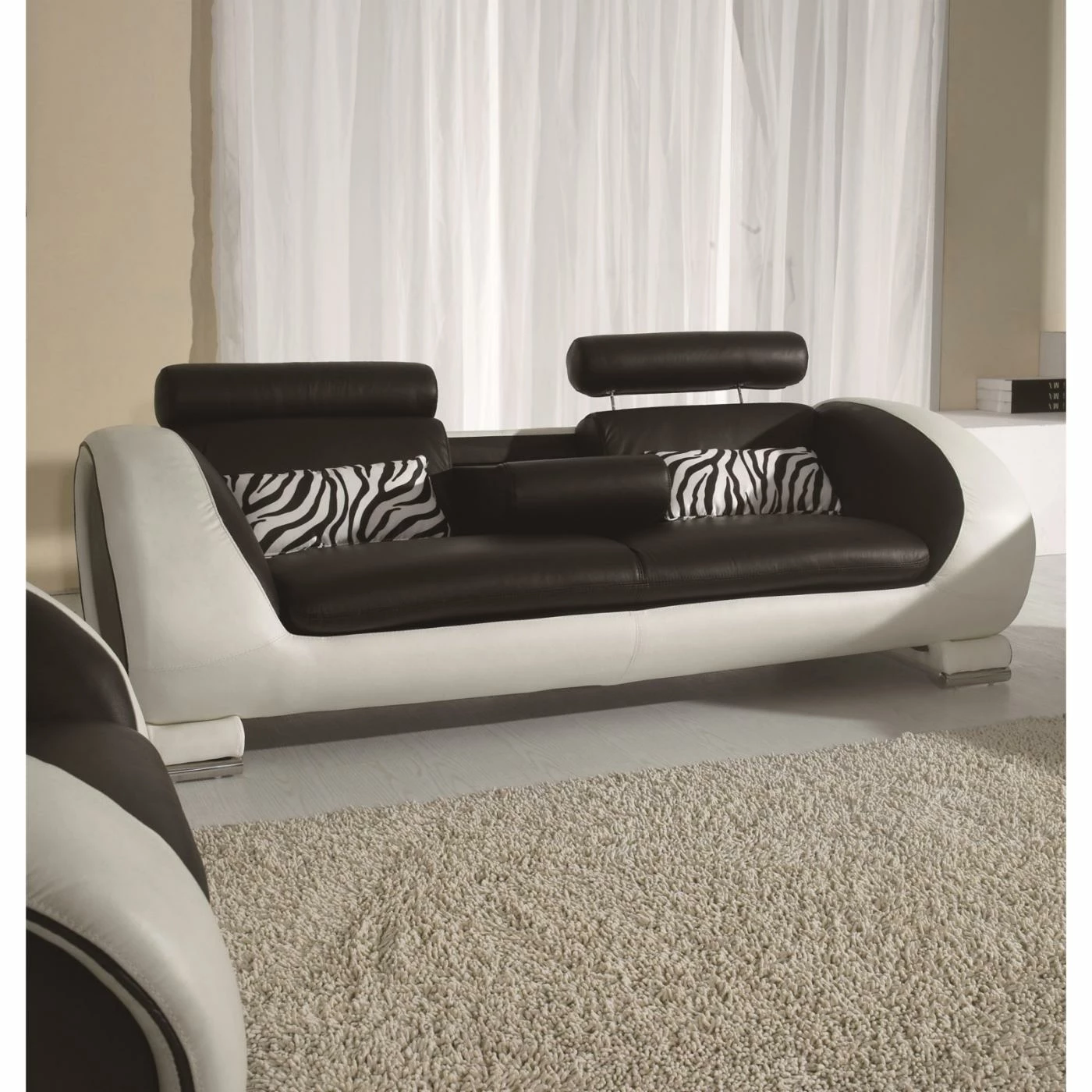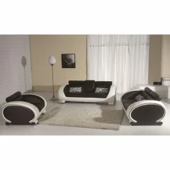 The overall rounded designs of the Oakland Living Rounded Modern Sofa Set makes each piece modern. This sofa set includes a sofa, loveseat, and accent chair for your living space. Solid wood frames are covered with padded foam and upholstered with 100% high-quality leather in black and white. Adjustable headrests allow you to customize your seat to make it comfortable. Zebra-print throw pillows are included. This set pairs best with other contemporary dΓ©cor.