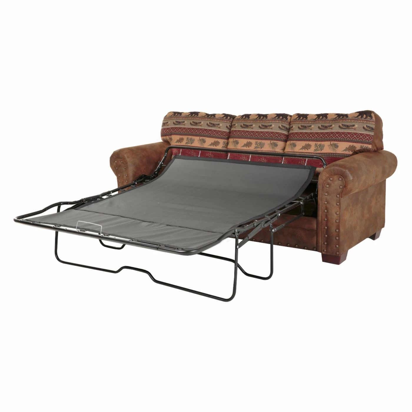 Transform your living room into a cozy lodge with the Outdoor Leisure Products Sierra Lodge 4 Piece Sofa Set. This set includes a loveseat, generous chair, ottoman, and sofa or sleeper sofa (optional). Solid wood frames and fiber-wrapped foam cushions provide comfortable stability. Faux leather microfiber, Southwestern-inspired cotton tapestry fabric, and nailhead accents create the rustic look you crave.