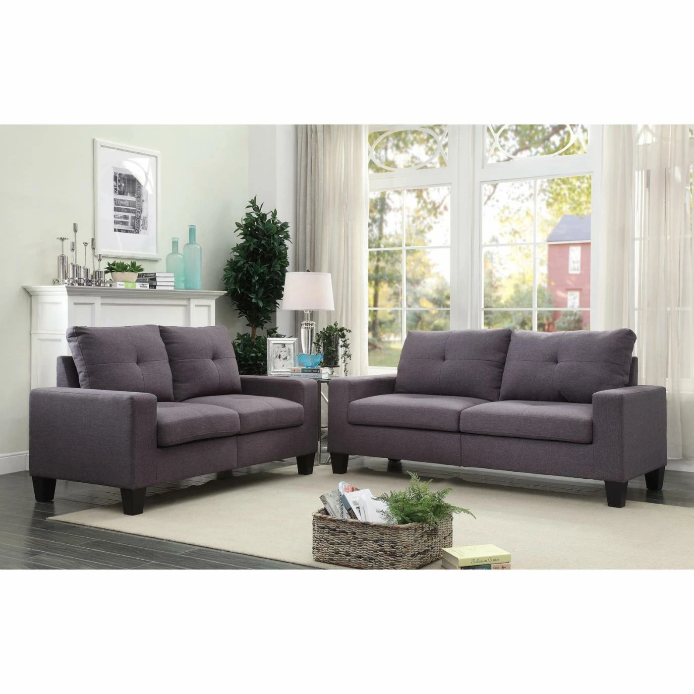 Linen upholstery in your choice of available colors and tailored details make the Acme Furniture Platinum II Linen Sofa perfect for your living room. This sofa features buttonless tufted pillow back cushions, squared arms, and tapered wood block legs. To ensure you’ll be seated comfortably, it boasts plush foam cushioning and pocket coil seating.
