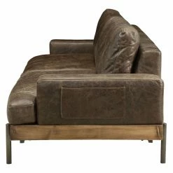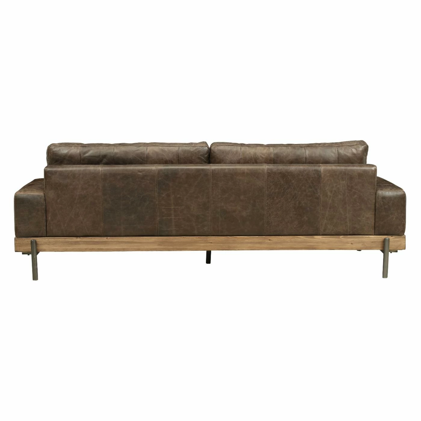 Sumptuous distressed chocolate top grain leather makes the Acme Furniture Silchester Sofa a luxurious place to lunge. To make this sofa infinitely useable, it features wide track arms and a handy exterior pocket. Its oak-finished exposed wood base and sleek legs in bronze add an industrial flair to this sofa.