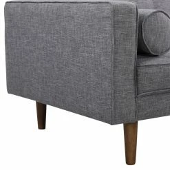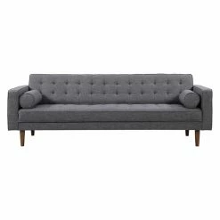 Sleek and stylish, the Armen Living Element Sofa is inspired by mid-century modern design and contemporary sensibility. Featuring a button-tufted bench seat that’s softly upholstered in a smart, neutral gray fabric, this elegant sofa offers a comfortable place for conversation or lounging. Matching bolster pillows on either end and tapered walnut legs lend the perfect fashionable finish to this wood-frame sofa. It pairs perfectly with other pieces in the Element collection for a coordinated design.
