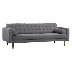 Sleek and stylish, the Armen Living Element Sofa is inspired by mid-century modern design and contemporary sensibility. Featuring a button-tufted bench seat that’s softly upholstered in a smart, neutral gray fabric, this elegant sofa offers a comfortable place for conversation or lounging. Matching bolster pillows on either end and tapered walnut legs lend the perfect fashionable finish to this wood-frame sofa. It pairs perfectly with other pieces in the Element collection for a coordinated design.
