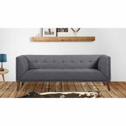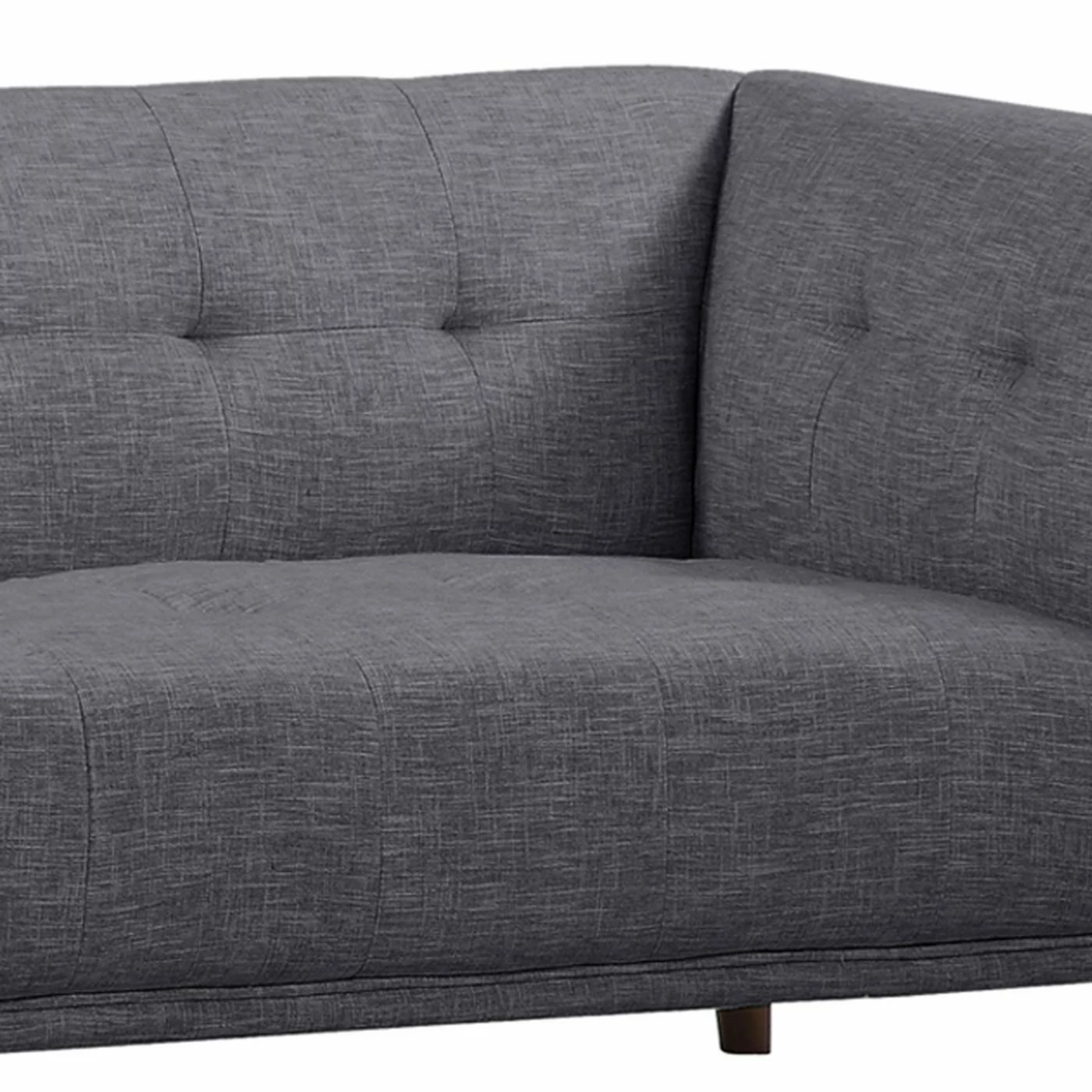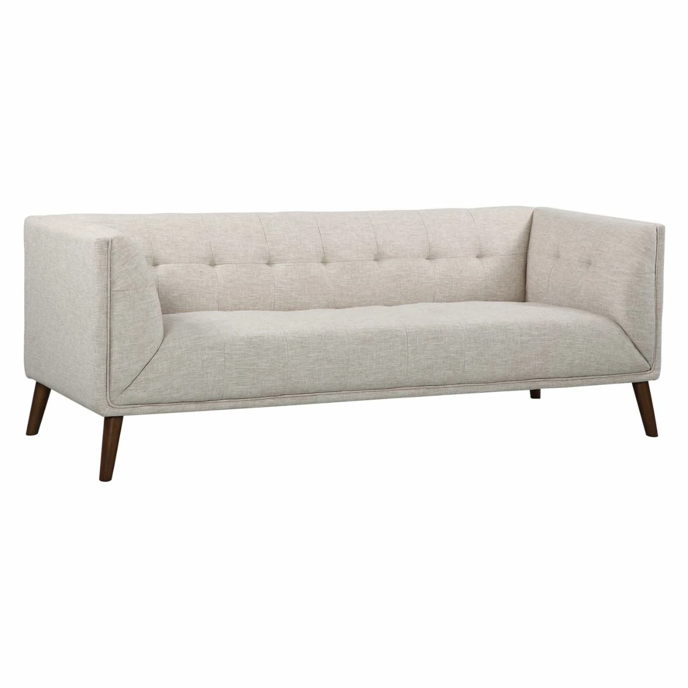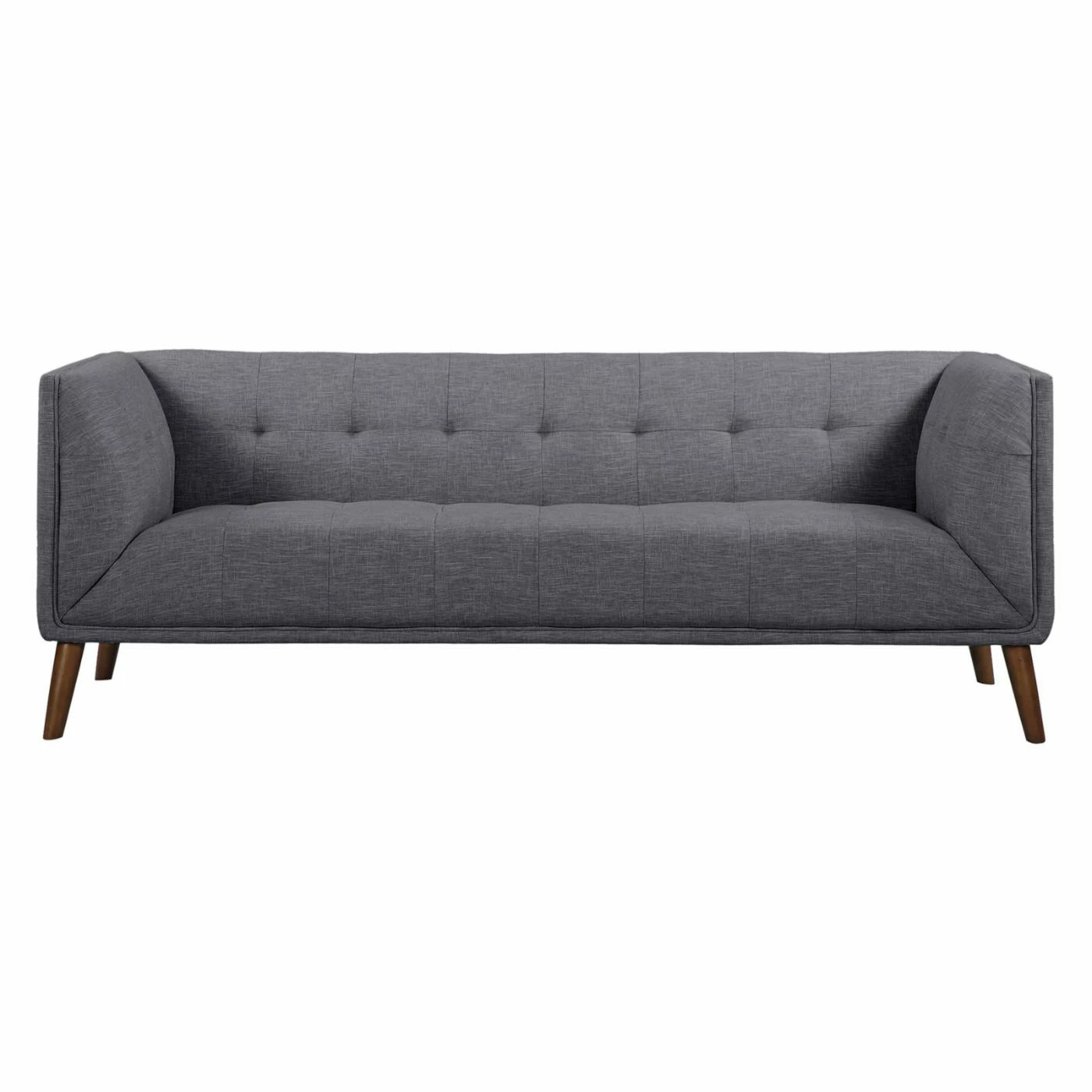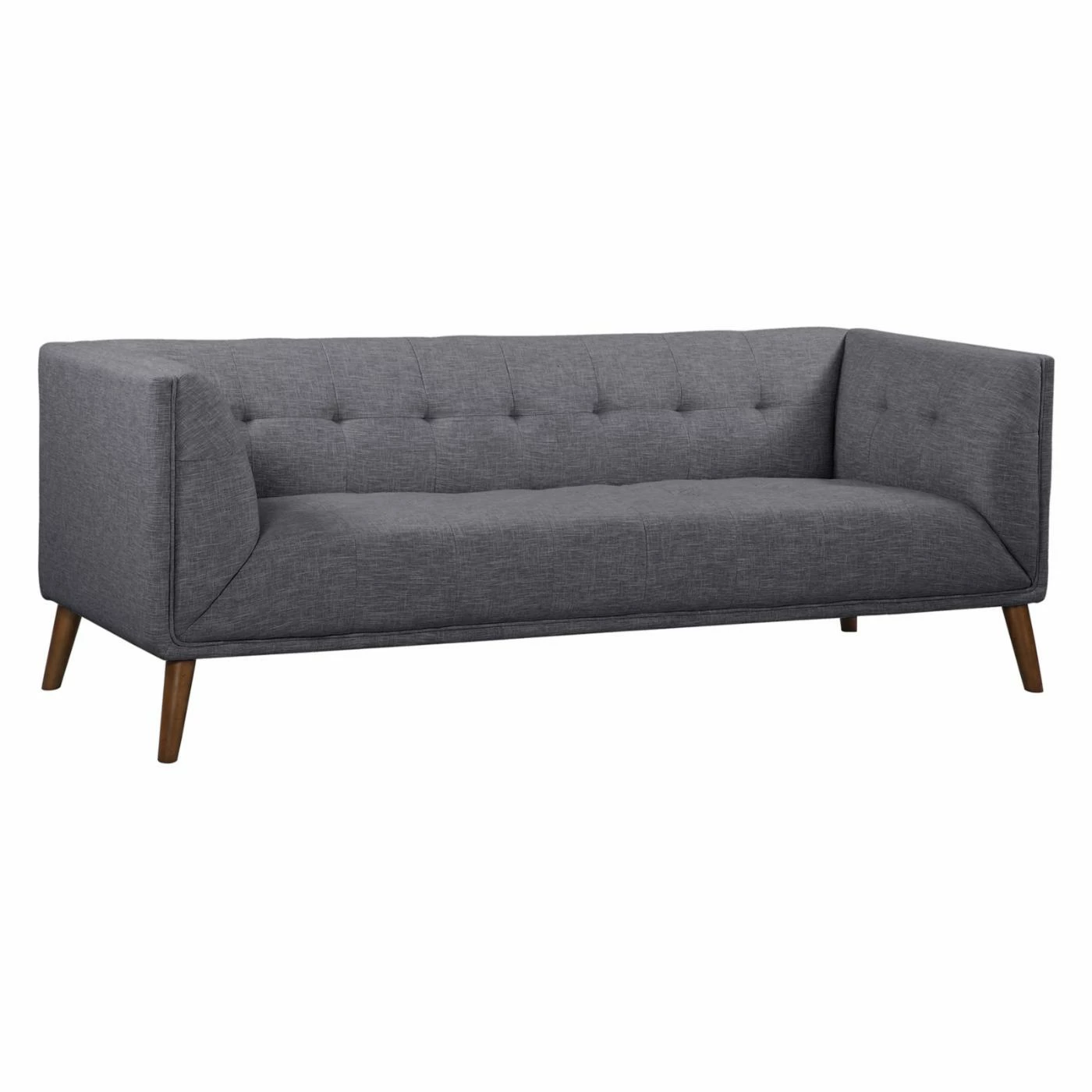 Perfectly squared angles and plush cushioning create a chic and cozy spot to lounge on the Armen Living Hudson Sofa. Boasting a compact design that fits easily into smaller spaces, this sleekly styled, fabric-upholstered sofa works just as well in larger areas. Simple button tufting on the seat back and arms add a tailored touch to this sophisticated sofa that’s finished with tapered walnut legs. Offered in your choice of available color option. Pair with other pieces in the Hudson collection for a look that’s chic and coordinated.