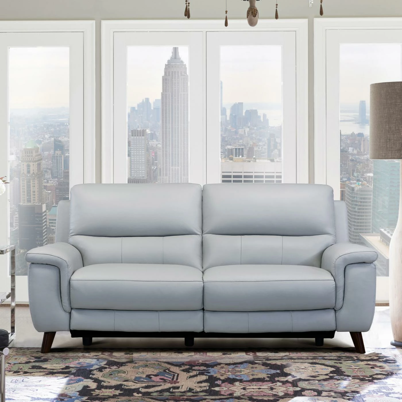 The Armen Living Steffanie Power Reclining Sofa with USB Port might just make your troubles melt away while you relax. This reclining sofa is made from hardwood with high-density foam for added comfort. It features 100% top grain leather upholstery in dove grey. In addition to the power reclining mechanism, it includes a USB charging port to ensure your electronics never fail you while you take it easy.
