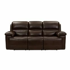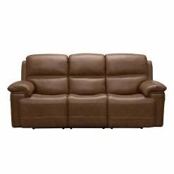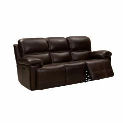 Sophisticated and relaxed, the Barcalounger Sedrick Leather Power Reclining Sofa features power head rests and a plush pubback design. This has a t-cushion pad over chaise sectioned bucket seating with pocketed coil springs. The arms are hockey stick shaped with thick pillows tailored to perfection. Unique decorative whip stitching accents the back, wings, arms and chaise fronts. The power buttons feature USB ports to charge devices.