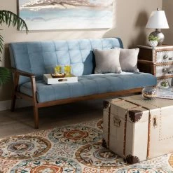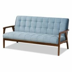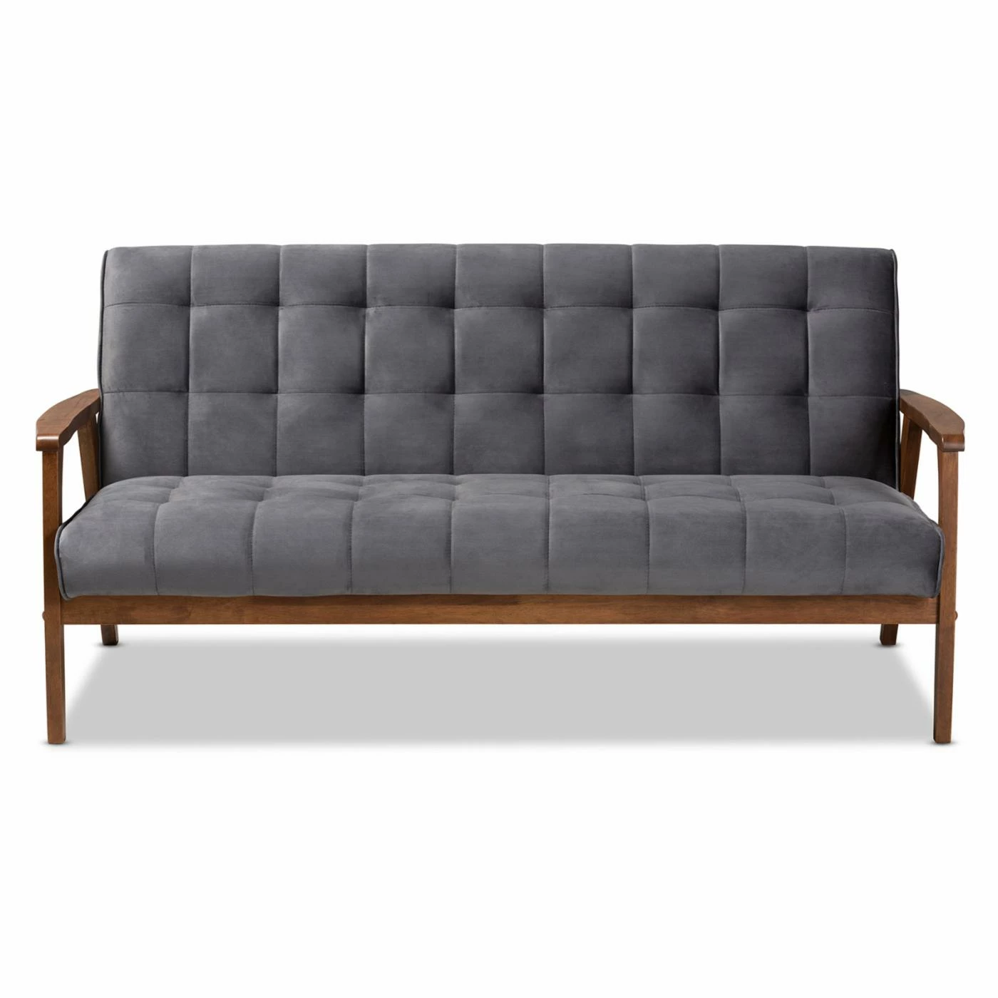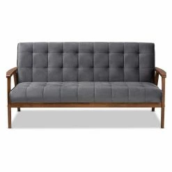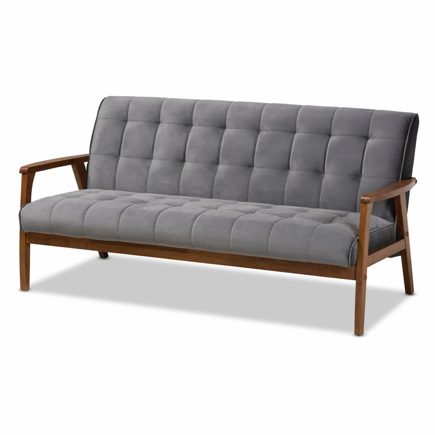 Bring sleek, sophisticated style to your living room or family room with the Baxton Studio Asta Velvet Tufted Sofa. The wood frame is in a warm, walnut brown finish. The padded foam cushions are upholstered in soft, velvet polyester. Biscuit tufting gives the sofa a plush look. Choose from available fabric colors to find the Baxton Studio Asta Velvet Tufted Sofa that works best for your home.