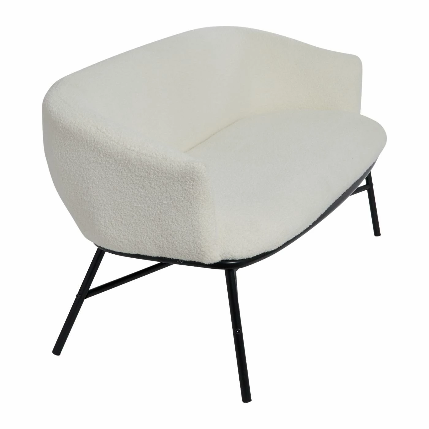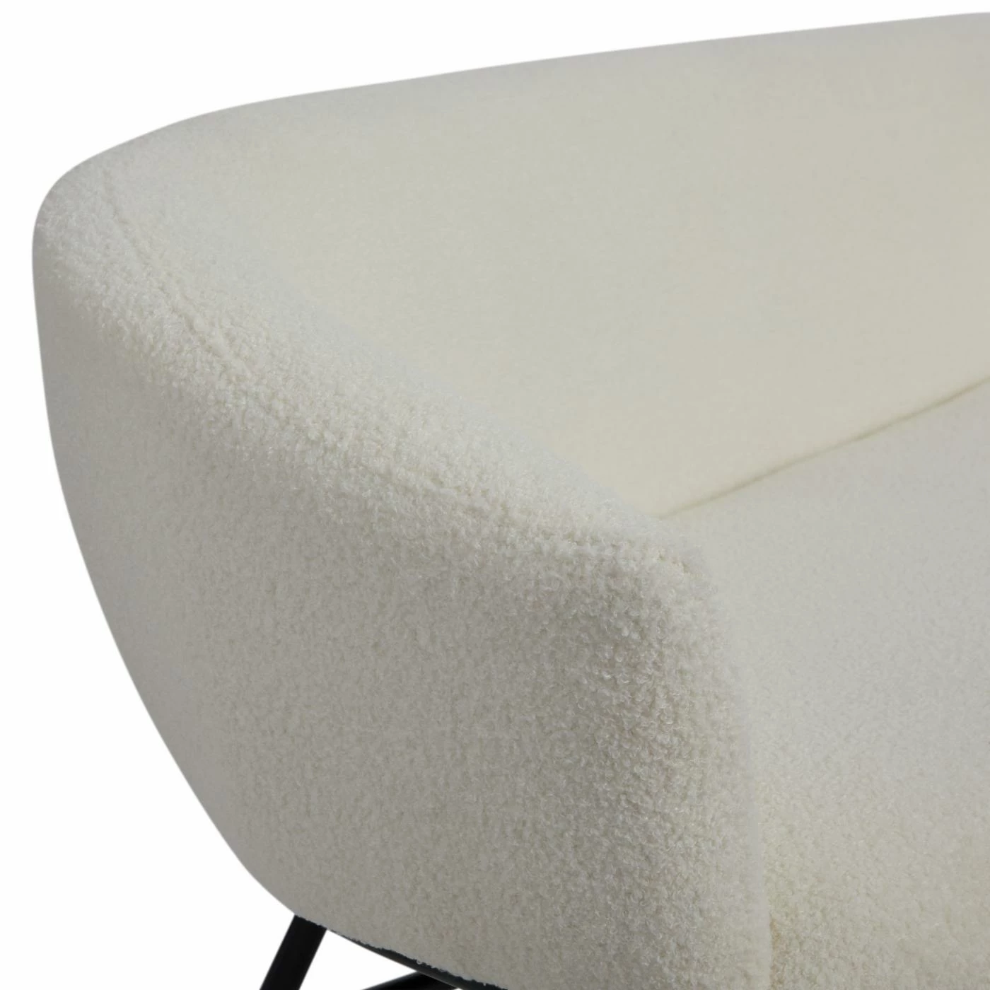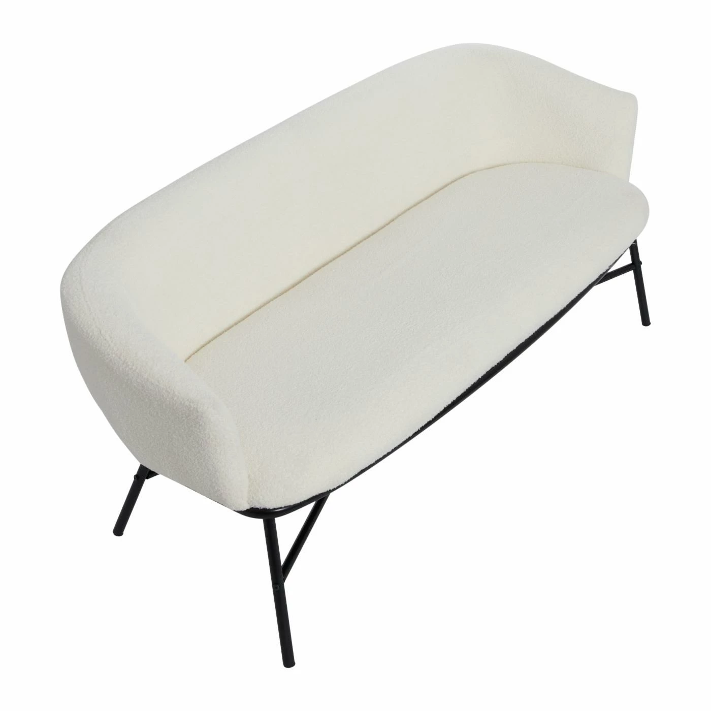 Style and function meet in this whimsical twist on a mid-century inspired design. With the sophistication of a classic bench sofa combined with contemporary boucle upholstery, this piece is created to make a bold statement. This strikingly modern sofa showcases sumptuous boucle upholstery on a sleek metal frame.