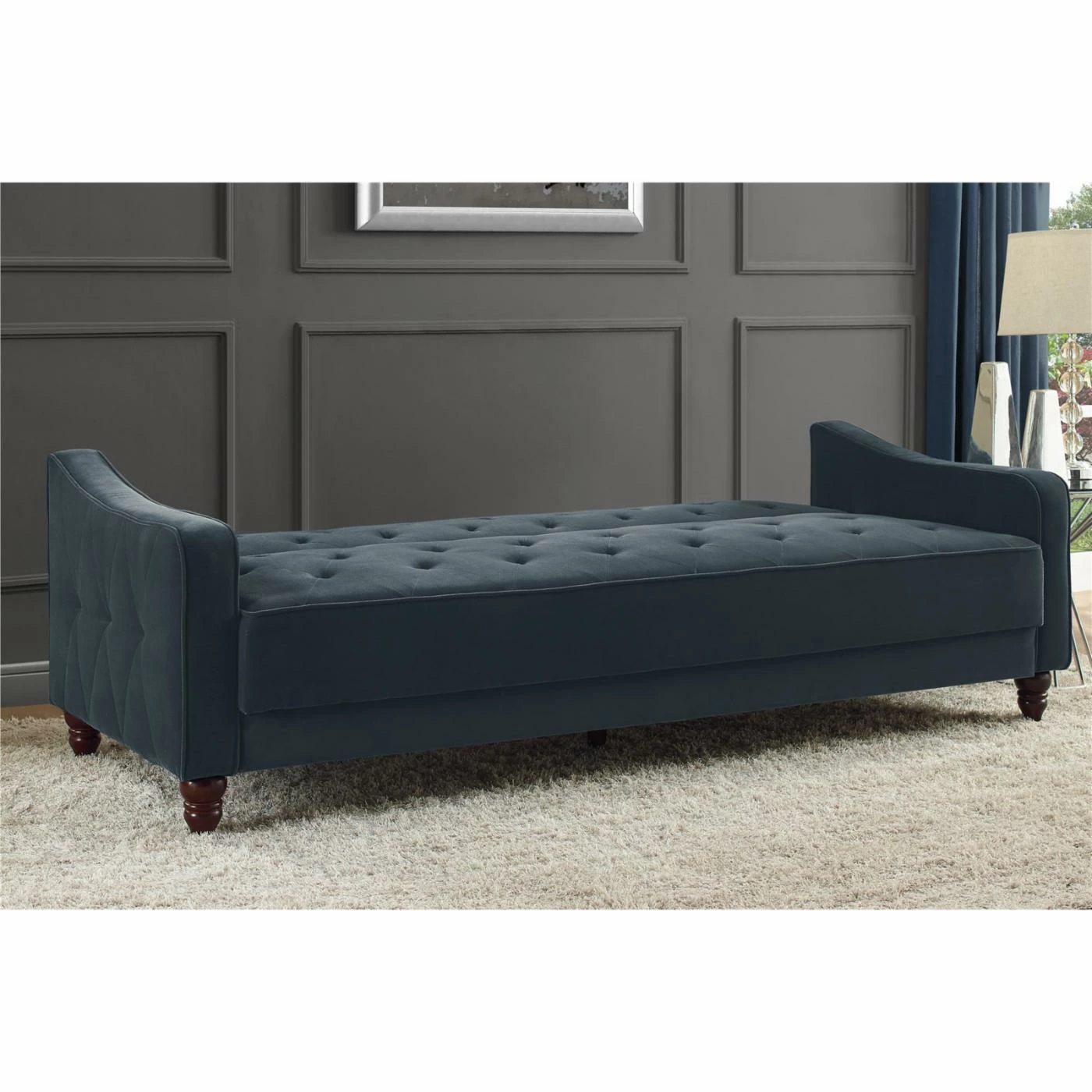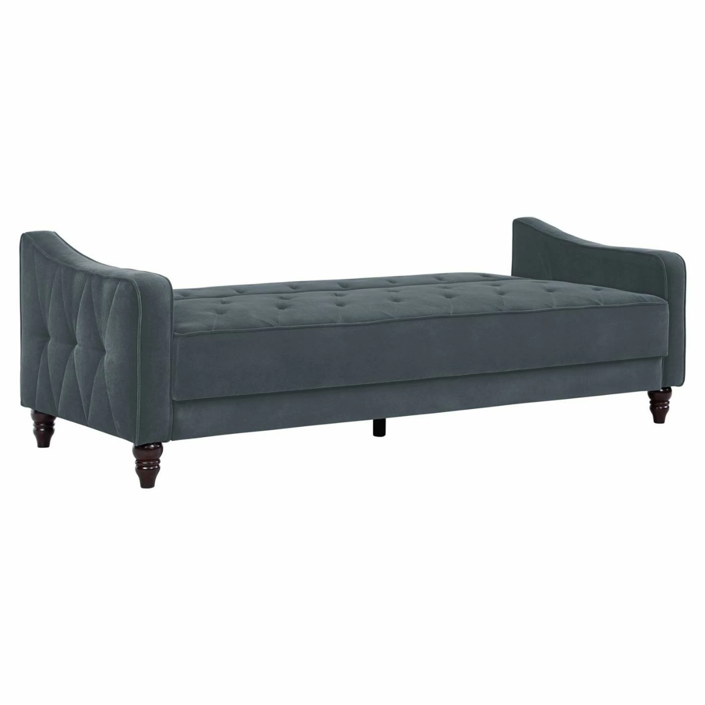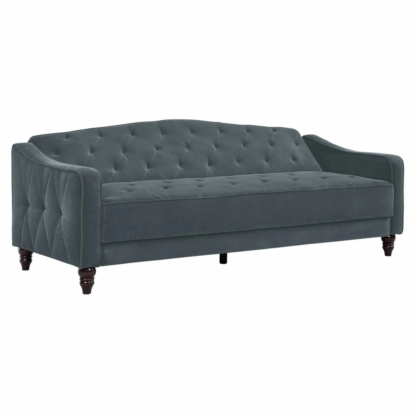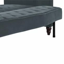 You’d never guess this ultra chic Dorel Home Novogratz Vintage Tufted Sofa Sleeper IIΒ becomes a comfy bed for overnight guests. This sofa sleeper features plush cushions and velvety soft velour upholstery in your choice of available colors. The back piece of the sofa sleeper adjusts for a lounging position and lays flat for sleeping. Designer details include diamond tufting on the sides, deep button tufting on the seat and back, and covered cord trim. Turned and tapered wood legs complete the look of this upscale sofa sleeper.