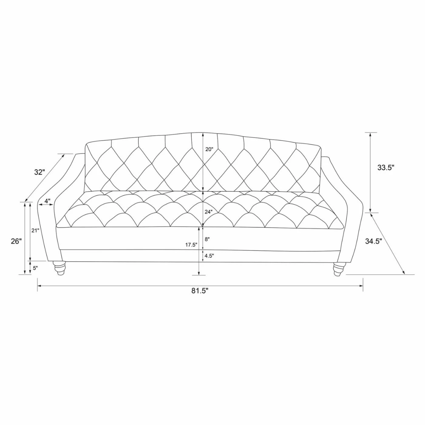 - Sitting dimensions: 81.5W x 34.5D x 33.5H in.