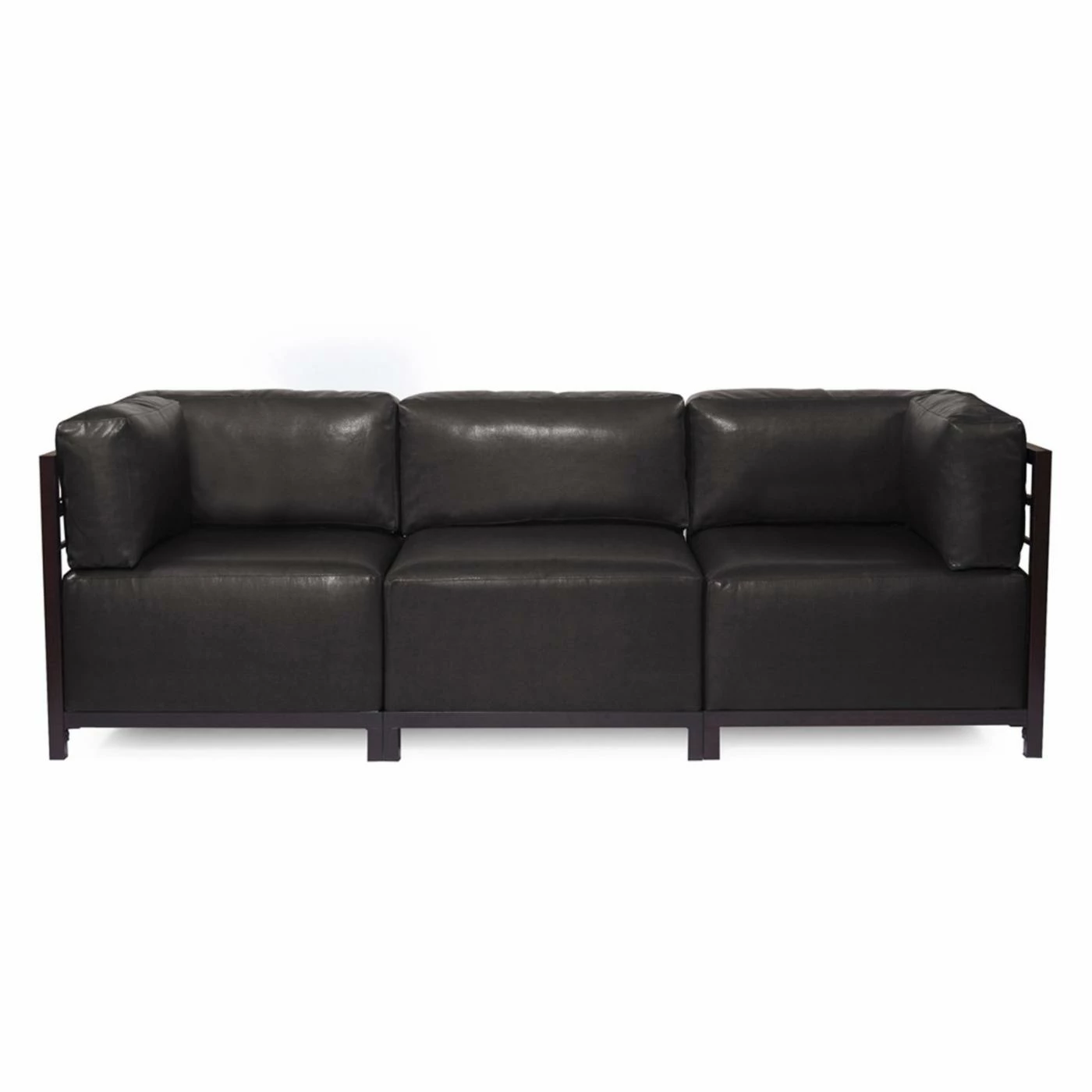 Upgrade your living room to a comfy modern lounge with this Elizabeth Austin Axis Avanti Sofa. This sofa features boxed foam cushions outfitted in custom-fit faux leather slipcovers that are available in your choice of color. It’s sleek and sturdy steel frame comes in finish options to further customize the look.