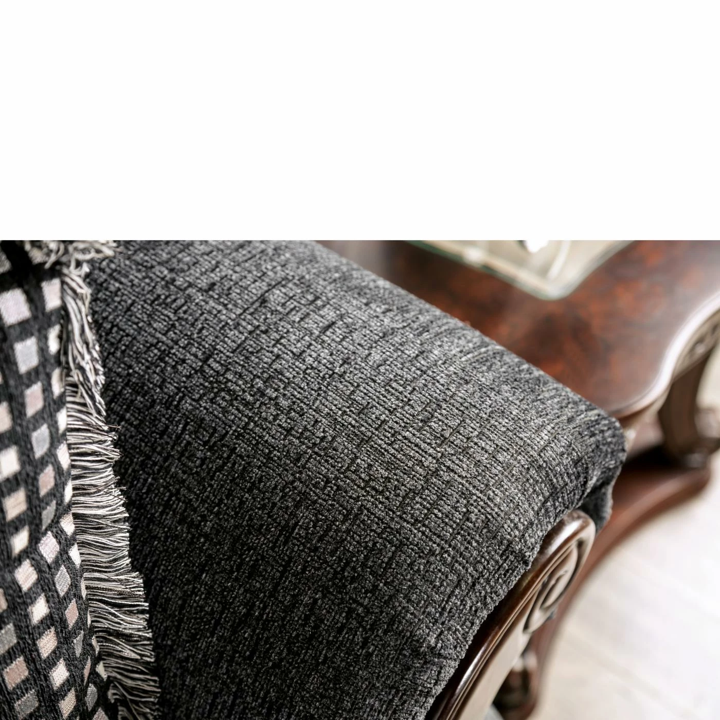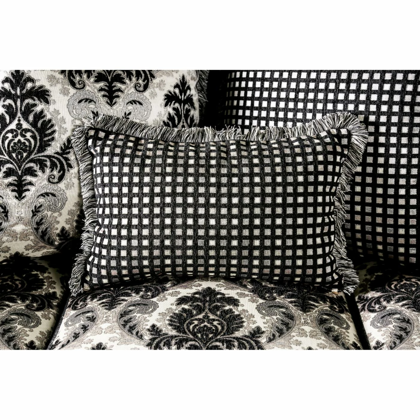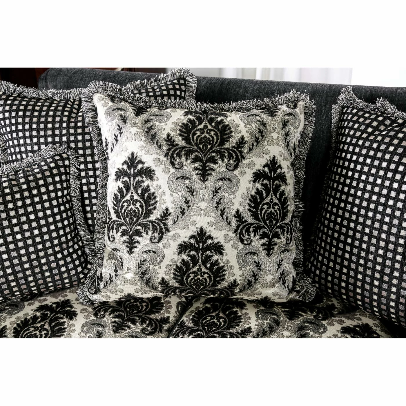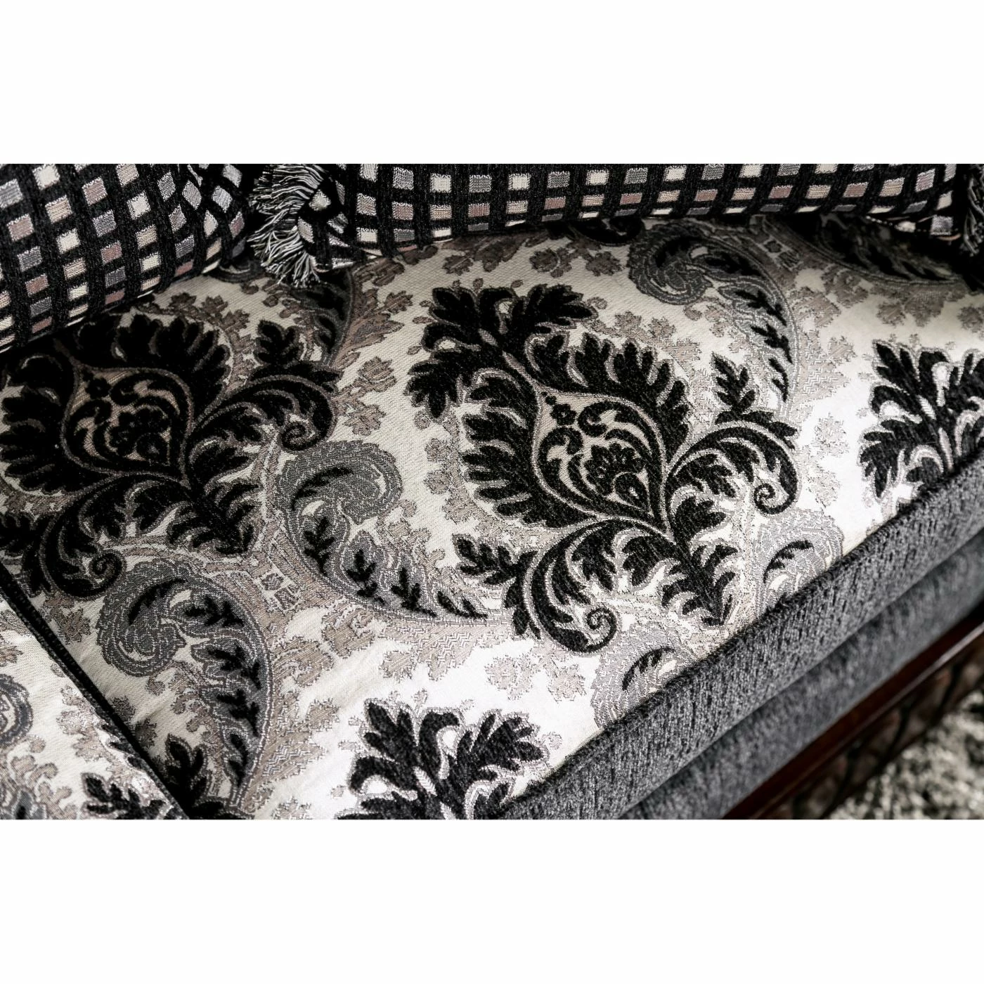 In a mash-up unique to itself, the Furniture of America Andrea Sofa combines modern considerations and traditional opulence. Carved scrollwork on a wooden front leads to chenille upholstery around a solid wood frame. Designed with your comfort in mind, the sofa features stuffed rolled arms and a button tufted wingback. The seat cushions, in box style, boast floral patterns that bring to mind old world embroidery. Detached pillows complementary to the sofa’s fashion are included. Pair with the Andrea Loveseat for a complete set. For a customized look, choose from available color options.
