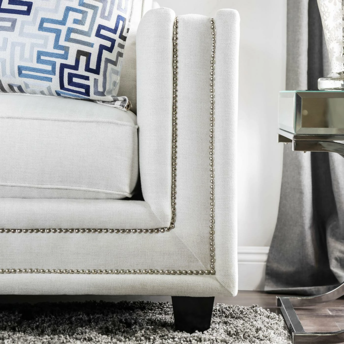 - Bright silver nailhead trim