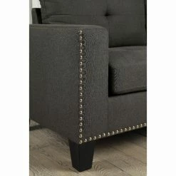 The Furniture of America Contemporary Redford Nailhead Sofa is going to cut a striking profile in any contemporary space. The long, straight lines of this sofa aren’t afraid to be called modern, but the nailhead trim and tufted stitching add a touch of classic embellishment. High-density foam adds comfort and support while reinforcing the angular form. A linen-like cover of grey fabric helps continue that European-inspired style. The interior frame is made from solid hardwood, giving it the strength it needs for daily love and attention. Assembly required.