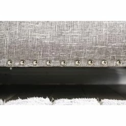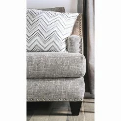 The Furniture of America Kadin Transitional Sofa offers an elegant home style that’s versatile and appropriate for almost any space. This contemporary sofa features a straight-lined form with sloping armrests flanking seat and back cushions that are pleasantly but not overly stuffed. The chenille upholstery gives it a modern, grey-toned finish that’s complemented by the silver of the oversized nailhead trim. The interior frame is made from solid hardwood that’s designed for years of regular use. A set of matching accent pillows give this piece a high-end finish. Assembly required.
