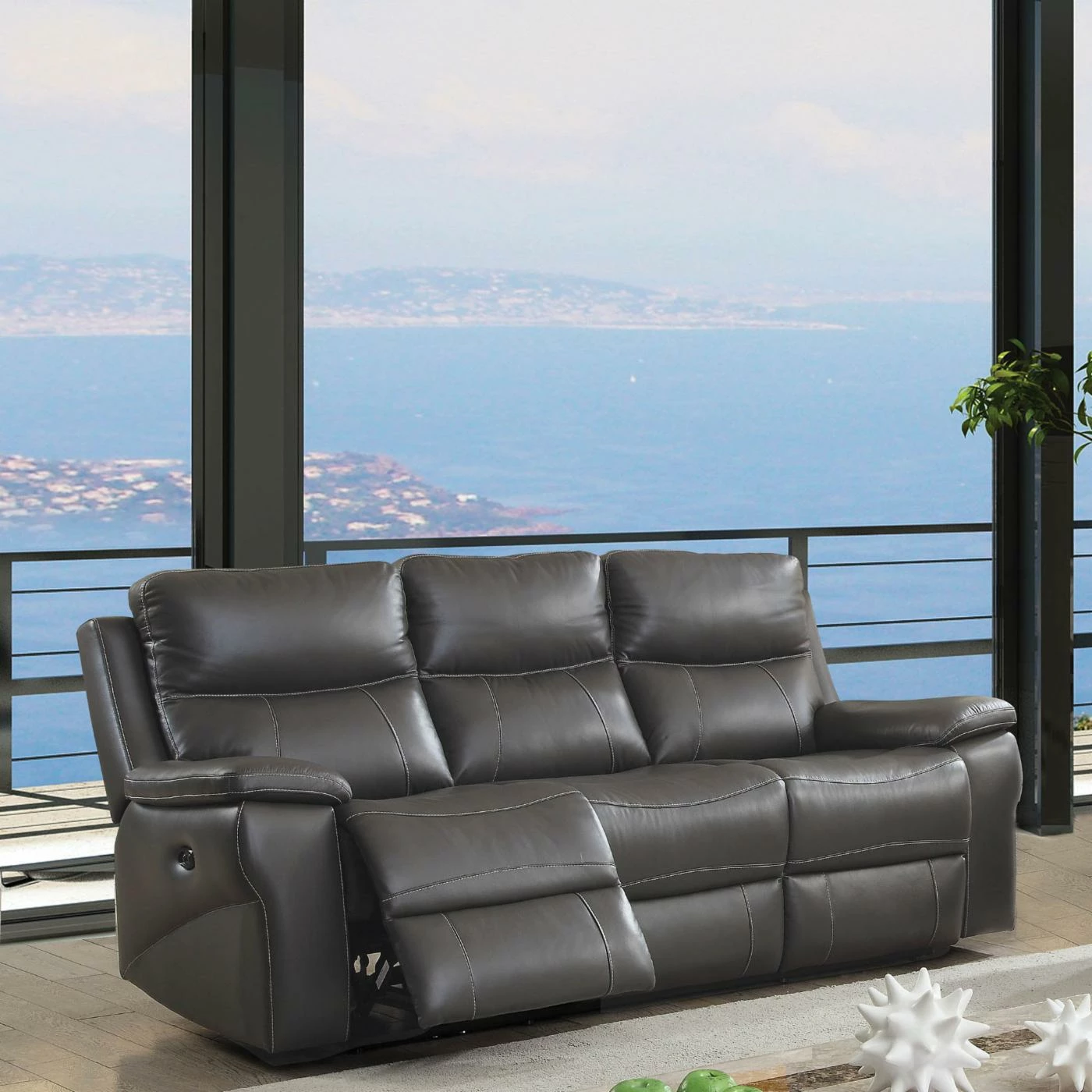 - Top-grain leather upholstery with faux-leather match