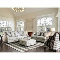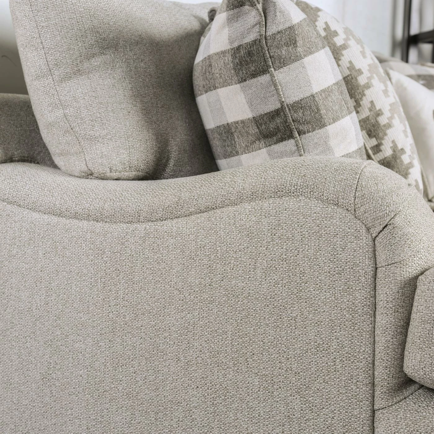 If a picture of the Furniture of America Stanley Stain Resistant Sofa is enough to grab your attention, then you’ll love the way this sofa is ready to endure years of regular use without breaking a sweat. This unique sofa features a family-friendly fabric that’s ready to deal with life in a busy, high-traffic area. The deep seating is surrounded by a pillow-style back and wide, rolled arms. The interior frame is made from solid hardwood that’s wrapped with layers of dense foam. Over the top you get a soft, beige fabric that resists stains and UV-related damage. A set of patterned throw pillows complete the look. This loveseat could easily fit right in with both modern and classic home decor styles.