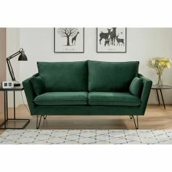 Bring a little classic New York style to your home with the Gold Sparrow Manhattan Sofa. With its mid-century modern, metal hairpin legs and sleek shape, this sofa makes class a high priority. Not without its comforts, this sofa is generously cushioned and includes two side throw pillows for added plush. Choose from the available fabric colors to suit your home’s unique aesthetic. Upholstered in a premium, low-maintenance fabric for durable design.
