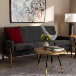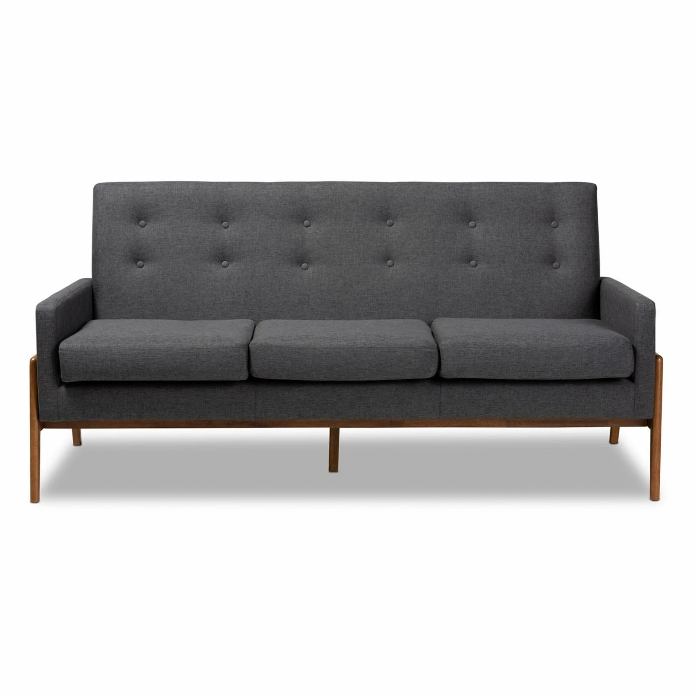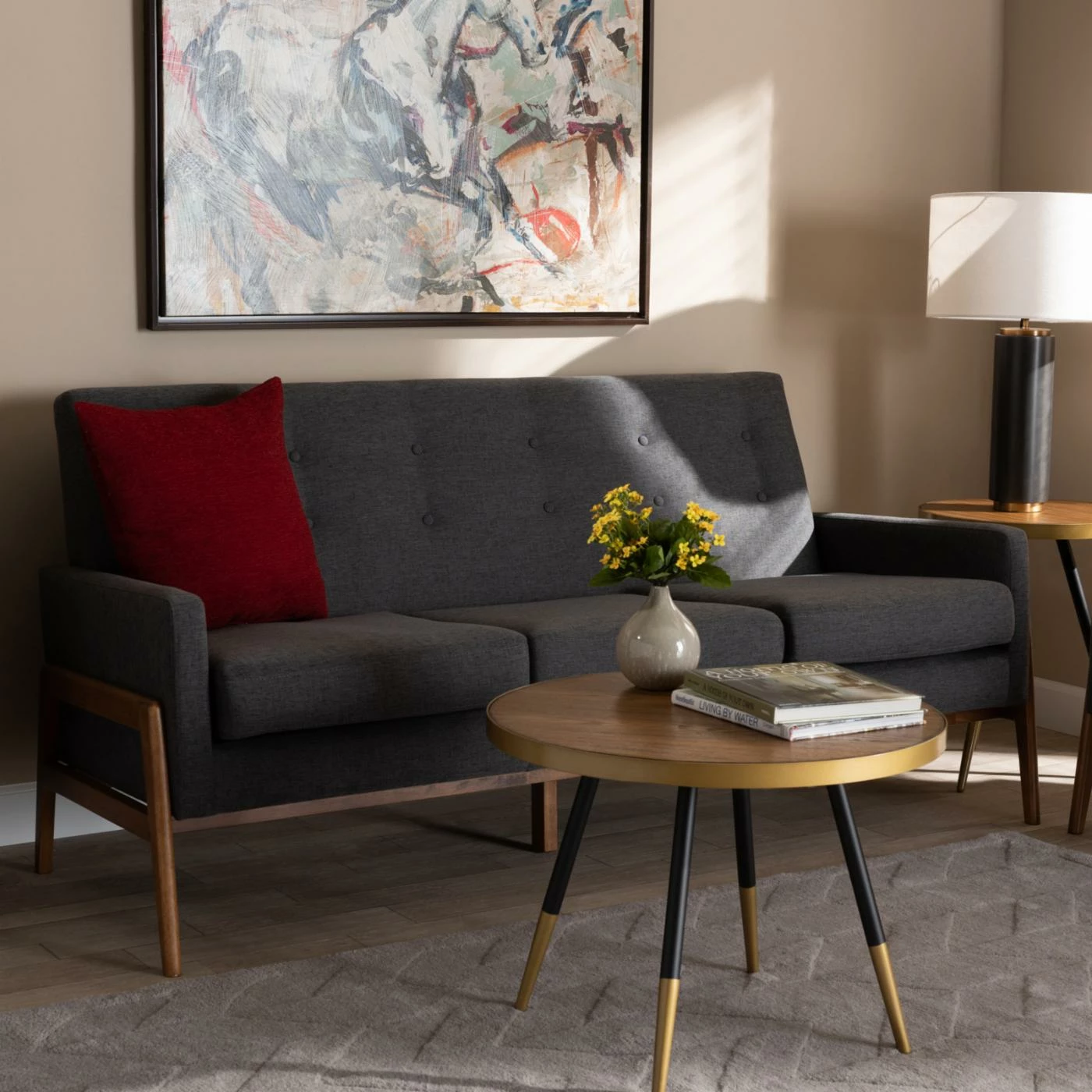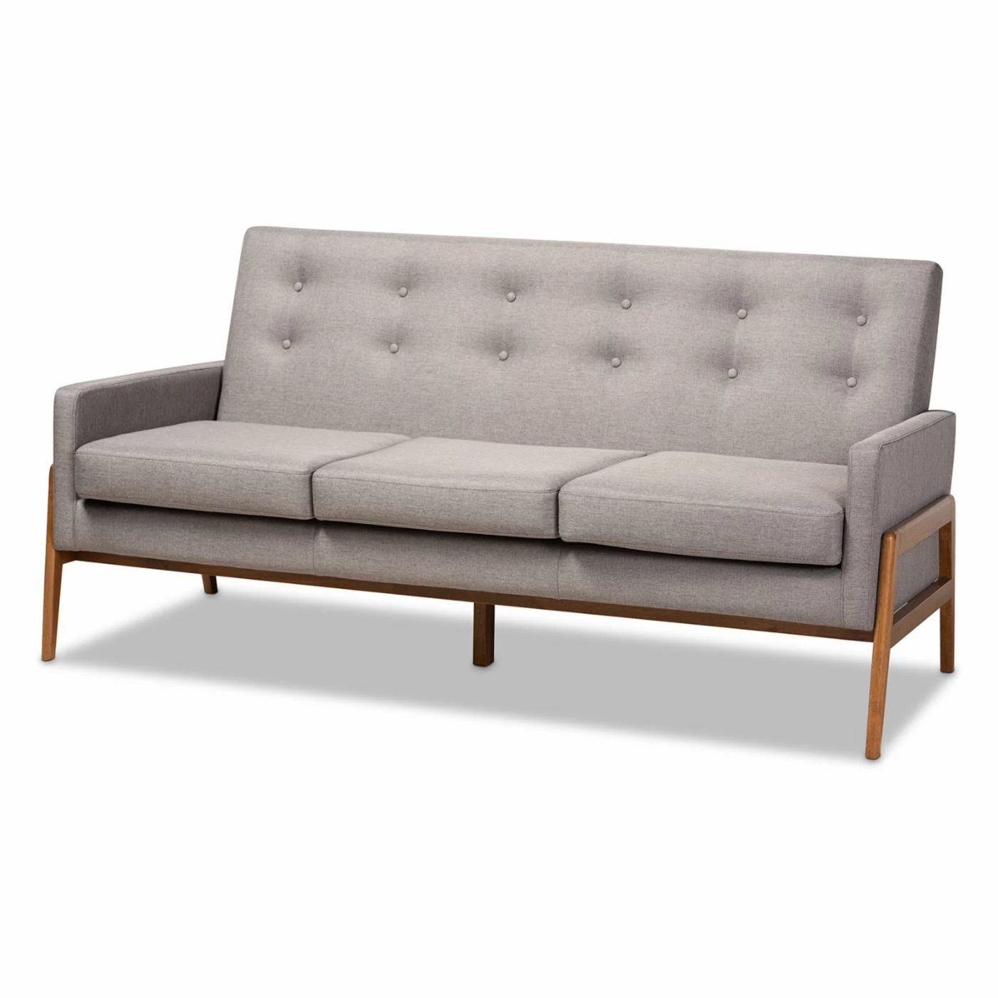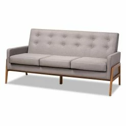 Bring mid-century modern style to your living room with the HN Home Erdem Mid-Century Modern Tufted Sofa. This sophisticated yet casual sofa has a wood frame in a warm, walnut finish. The padded foam cushions are upholstered in soft polyester. Button tufting gives the piece a plush look. Choose from available fabric colors to find the HN Home Erdem Mid-Century Modern Tufted Sofa that works best for your home.