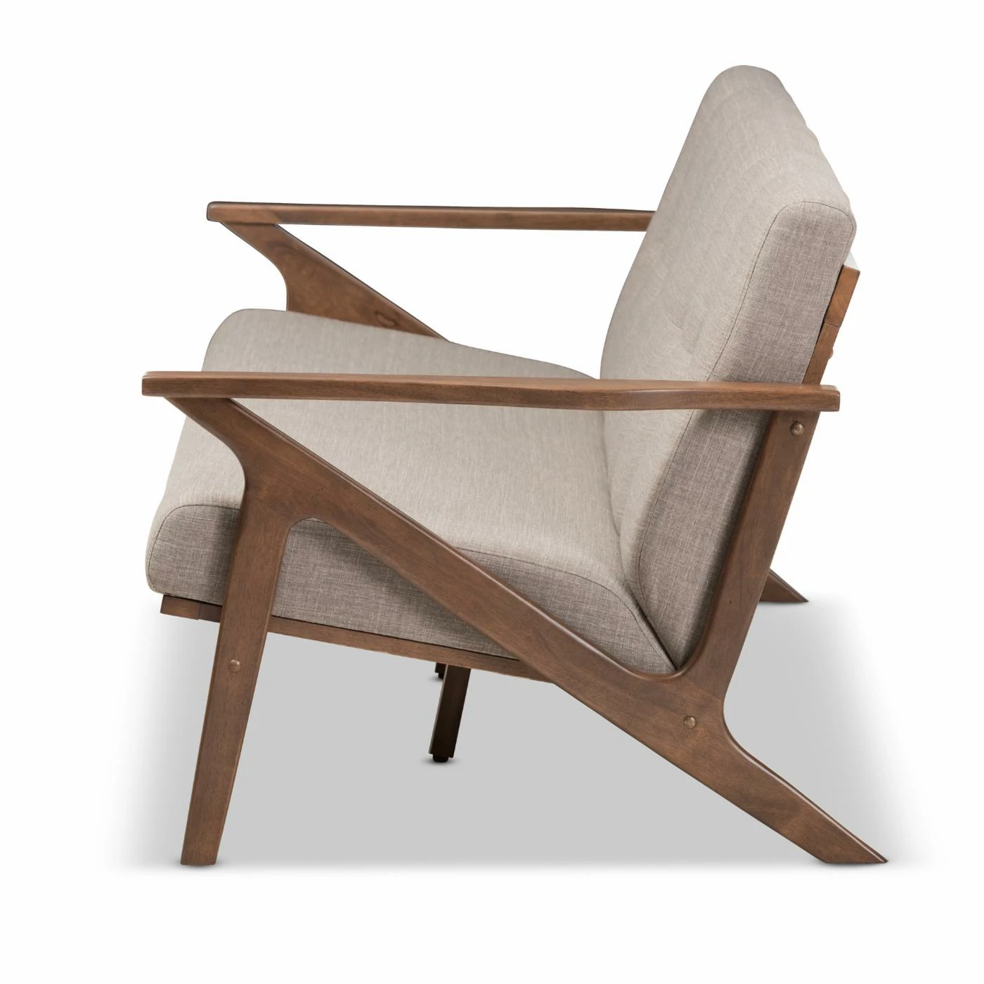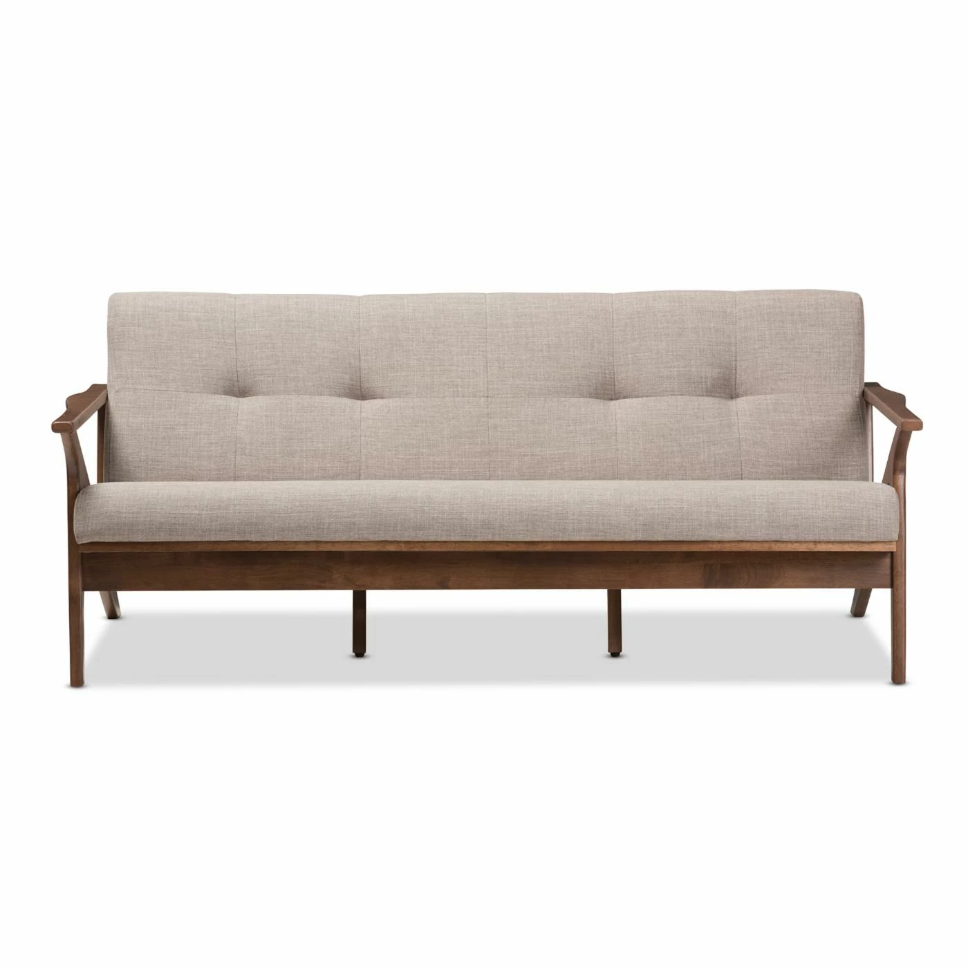 Transform your living room by adding a brand new focal point in the HN Home Hasan Mid-Century Modern Walnut Wood Light Gray Fabric Tufted 3 Seater Sofa. This wide sofa features light, neutral colors and a sleek, mid-century look that makes it an ideal piece around which to build an entire dΓ©cor. Rugged rubberwood constructs the frame, topped by a walnut brown finish. High-density foam pads the single-piece seat and back cushion. Upholstering the cushions is a light gray polyester fabric with a double-tufted accent on the outer seatbacks.