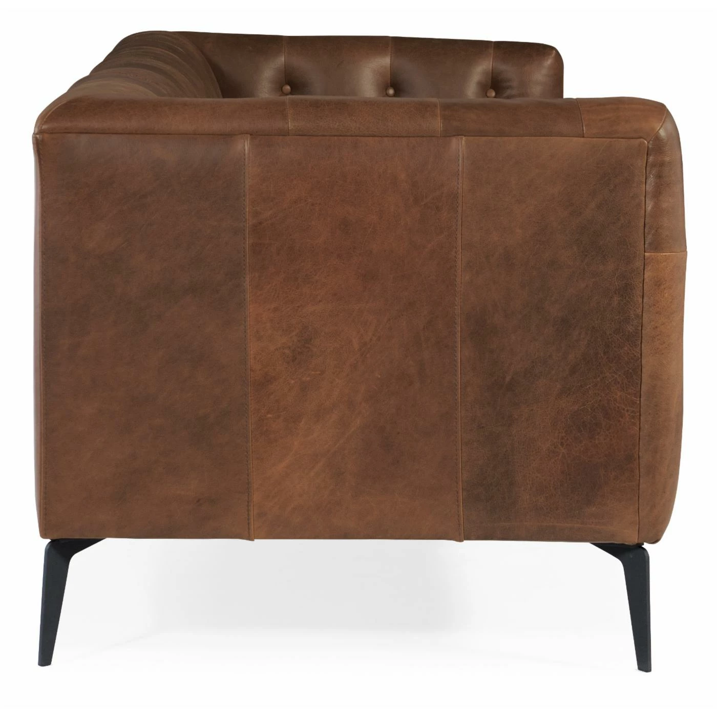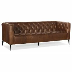 The Hooker Furniture Nicolla Stationary Sofa takes the classic texture of a button-tufted Chesterfield sofa and adds in the strong lines of a true Corbusier to create a look that’s modern, classic, and on point. This sofa features a robust wooden frame that’s wrapped with dense foam beneath fine leather upholstery, ensuring this piece offers undeniable style and comfort. The deep button-tufting adds texture and comfort to the design. Slender metal feet support the sofa with a floating appearance.