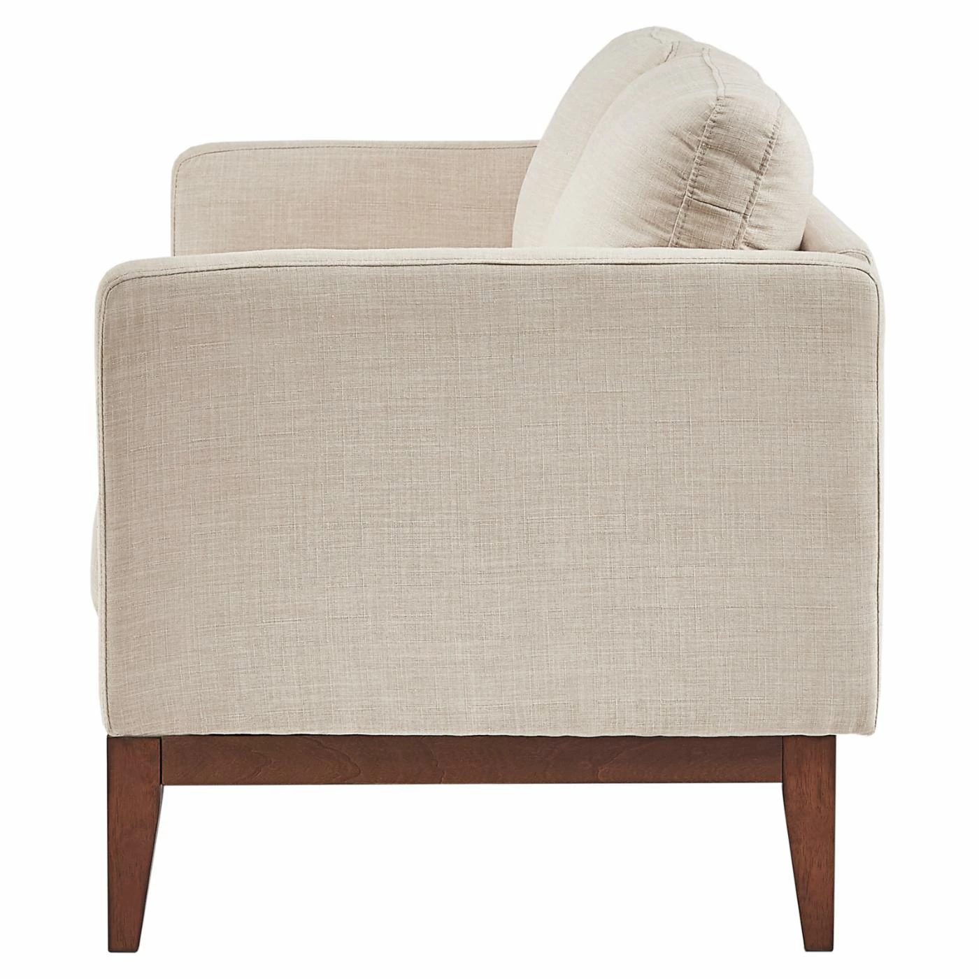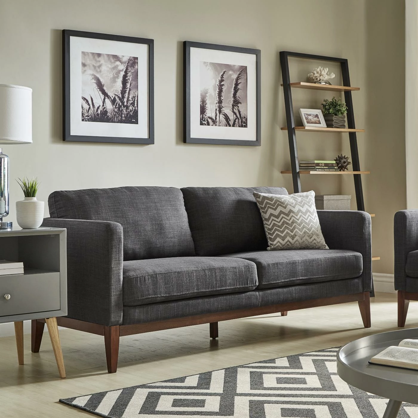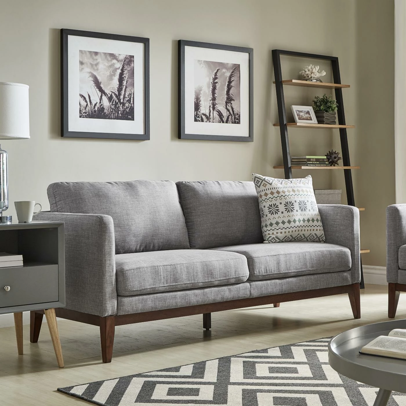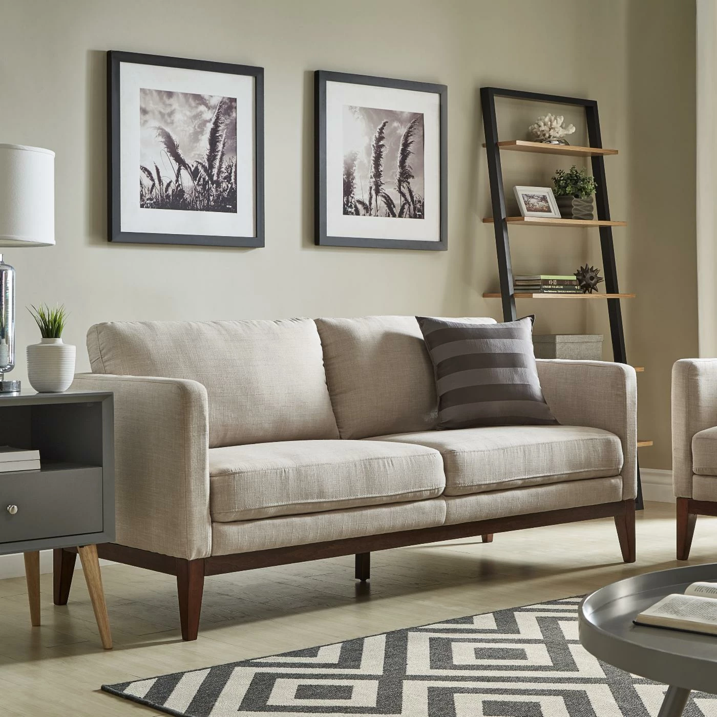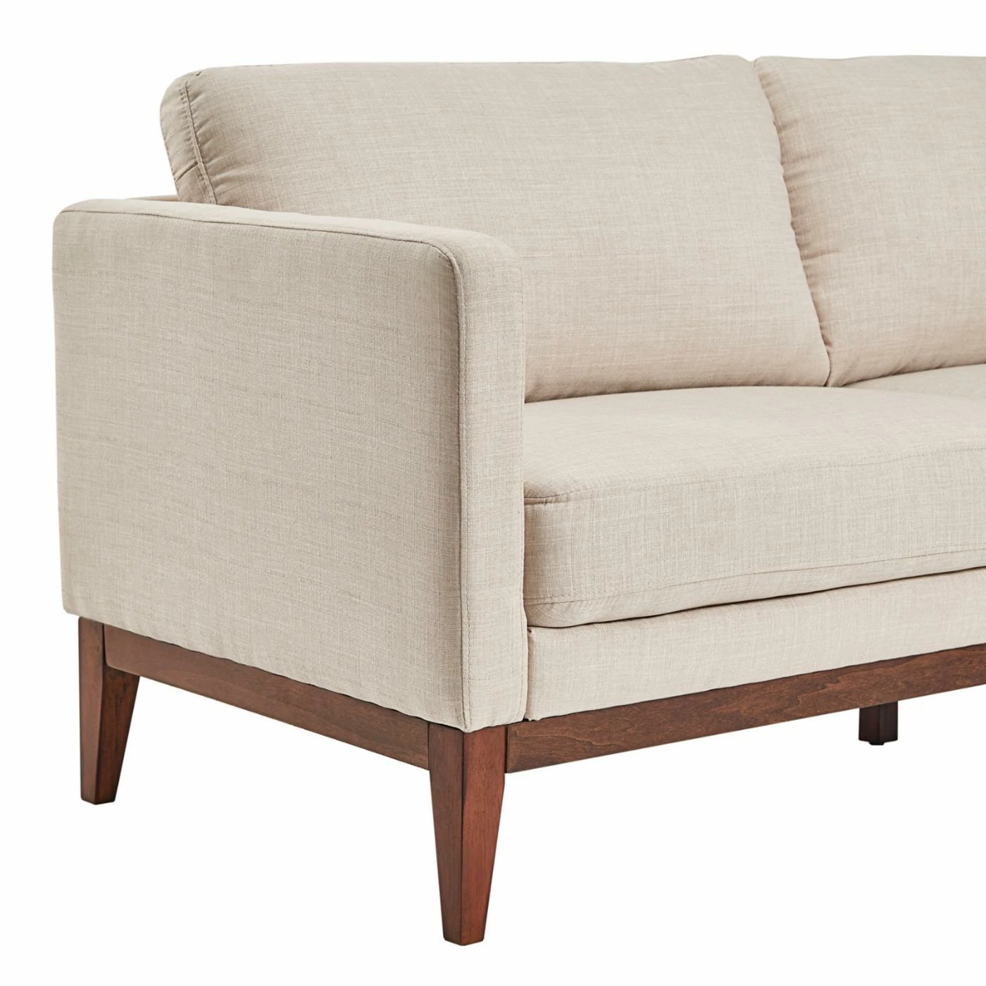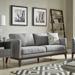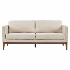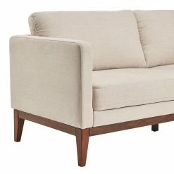 The HumbleNest Countryside Split Back Linen Upholstered Sofa lets you build a relaxed modern living room with a minimalist foundation and simple, neutral tones. The sofa’s wide frame is constructed from rubberwood solids and eucalyptus wood. Angled, tapered block feet support the piece. The square side panels, straight backrest, track arms, and box cushions are each padded with supple, high-density foam. Lush linen upholsters the sofa. Choose your preferred fabric color from the available.