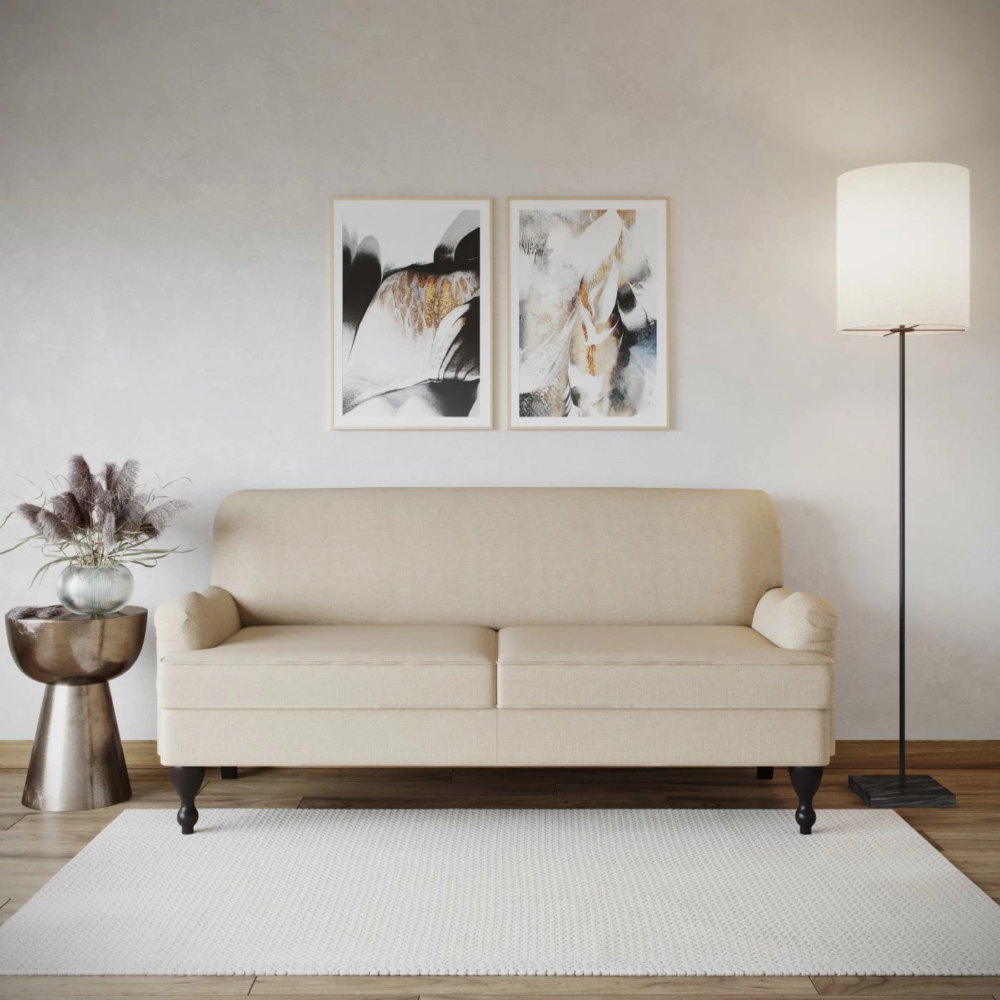 - Modern French style sofa with rolled arms and hand-crafted legs