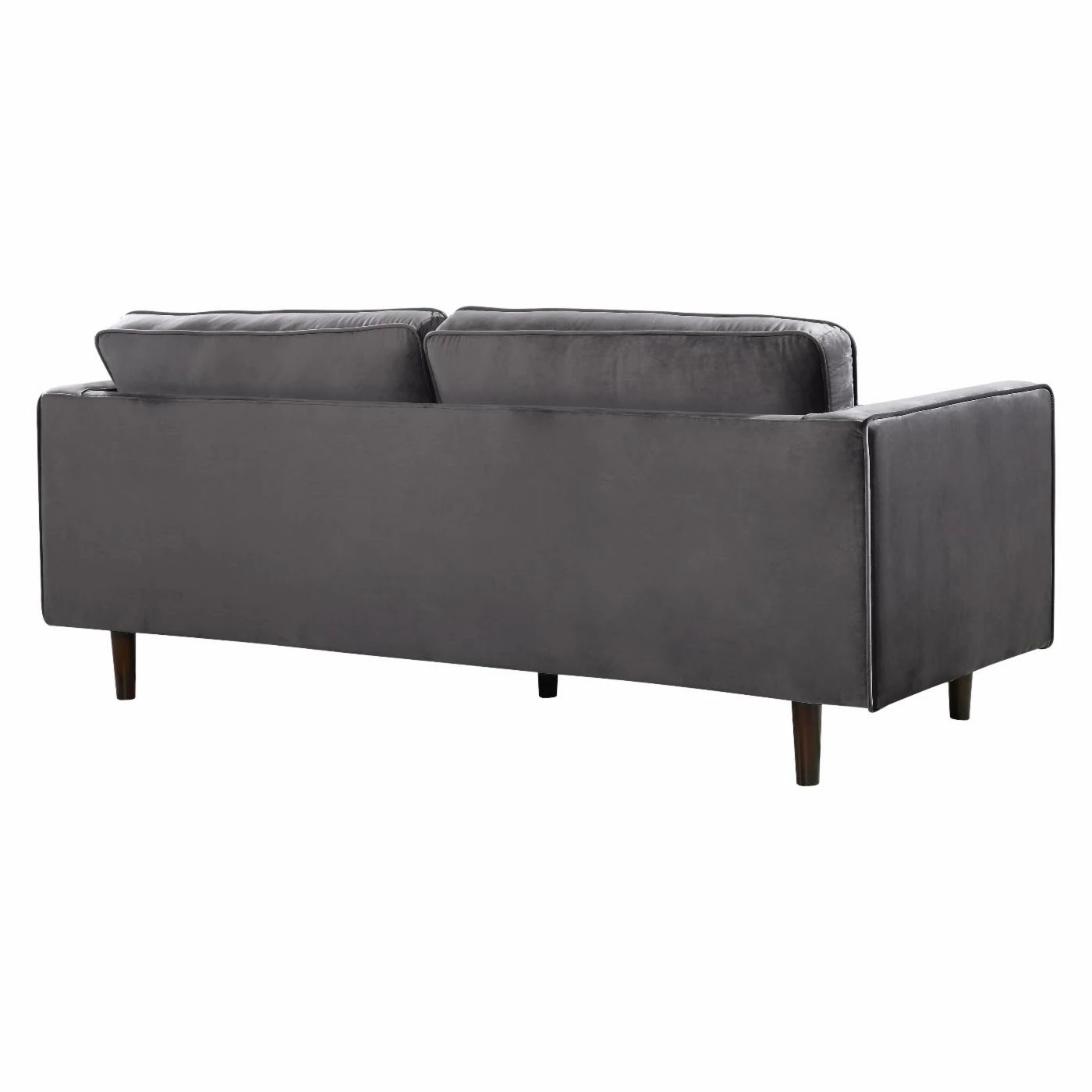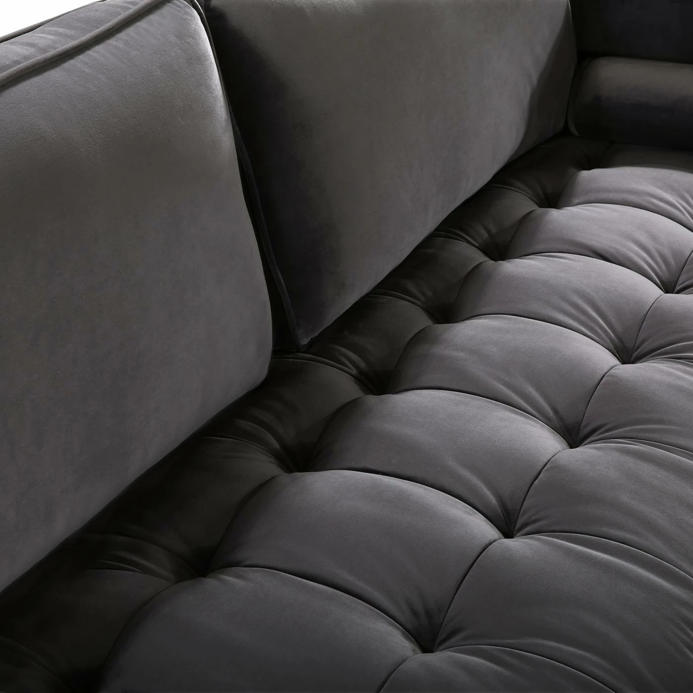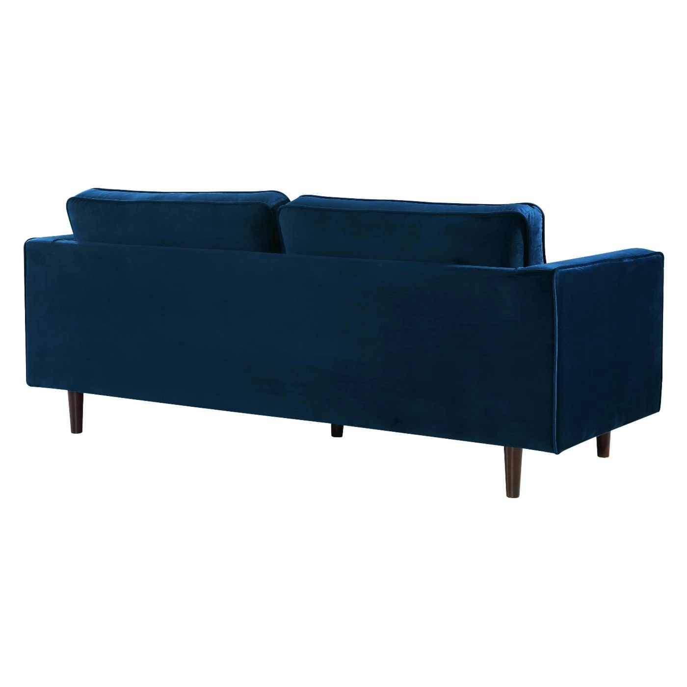 The plush cushions and modern design of the Meridian Furniture Inc Emily Velvet Sofa make it a comfortable and stylish addition to any home. With a durable metal frame designed to withstand the rigors of everyday use, this sofa is made to be used and admired. The velvet upholstery is accented by deep button tufting and wooden legs and comes in your choice of available colors. Two roll-style pillows provide extra back support when needed. Some assembly is required. This item matches other pieces in the Meridian Furniture Inc Emily Collection.