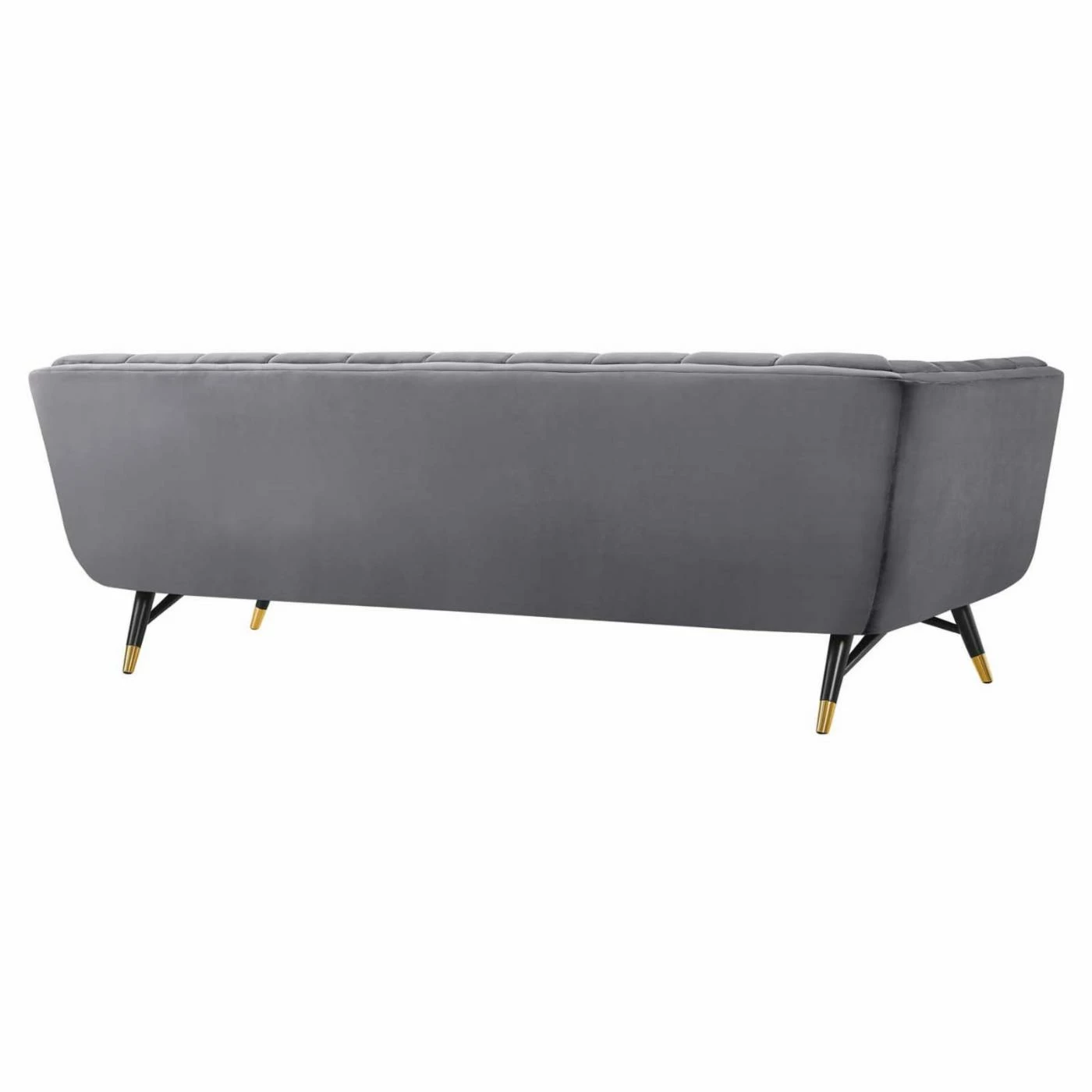 Elevate your living space with the Modway Adept Upholstered Velvet Sofa, completed in luxe velvet upholstery with your choice of available color. This contemporary sofa features a broad profile with deep seating and unique tufting throughout. It rests on a splayed birchwood frame and legs featured in black with gold metal end caps for a touch of glam.