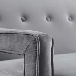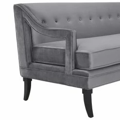 Try a little mid-century chic with the Modway Concur Button Tufted Upholstered Velvet Sofa to make your living room or day room come alive again. This sofa is supported by a solid birch hardwood frame with curved saber legs, finished in dark brown. Cut-out arms, a button-tufted bench-back cushion, and welted seams add to the transitional appeal. The frame and cushions are padded with high-density foam for comfort and upholstered in polyester velvet fabric with your choice of available color. Non-marking footcaps protect your floors.