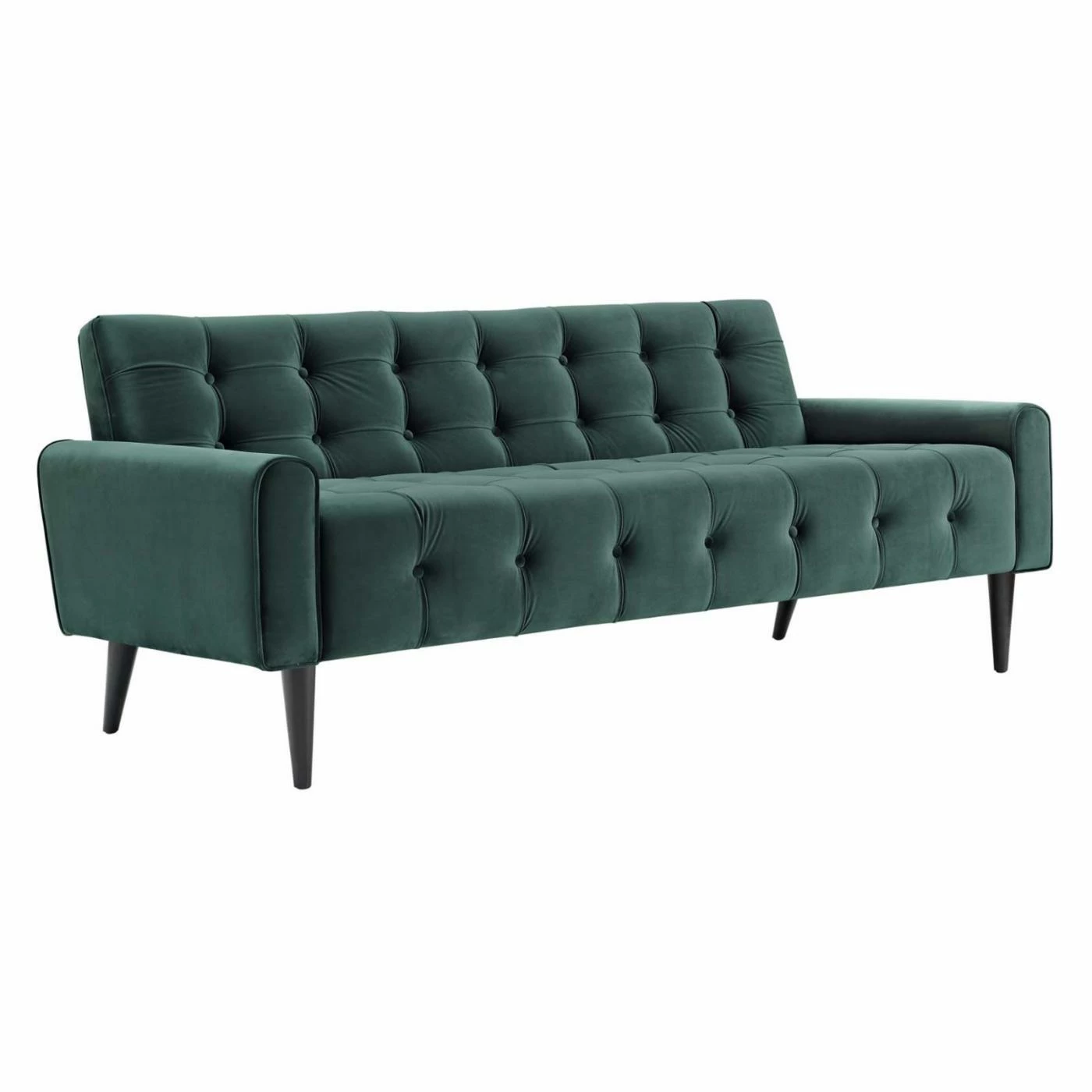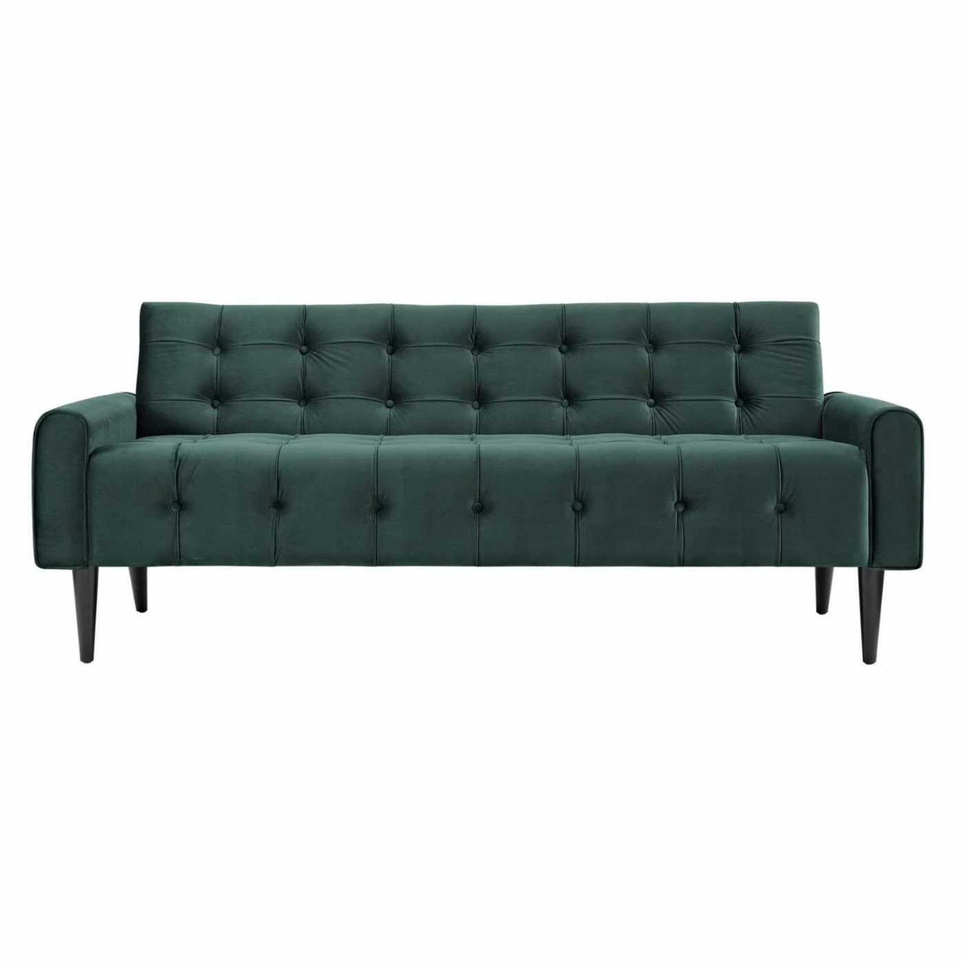 Enhance your living space with the exquisite Modway Delve Velvet Sofa. This fashionably chic sofa boasts gently curved armrests and deep button tufting. It comes densely padded in foam, ensuring you and your friends will repose in comfort. Smooth velvet polyester upholstery wraps this handsome sofa, making it too elegant to resist. It stands on solid wood legs with non-marking foot caps. This sofa will steal the show in your living room.