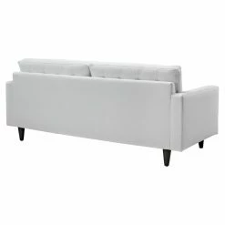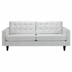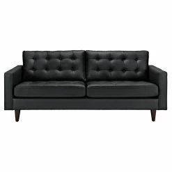 Discover distinguished comfort with the Modway Empress Leather Sofa. The straightforward design is at home with modern and contemporary schemes. Beautiful bonded leather upholstery is available in black and white options. The back cushions feature button tufted detail. The aluminum frame is lightweight for easy transportation, yet durable to withstand years of use. Solid wood legs elevate the sofa to stylish heights.