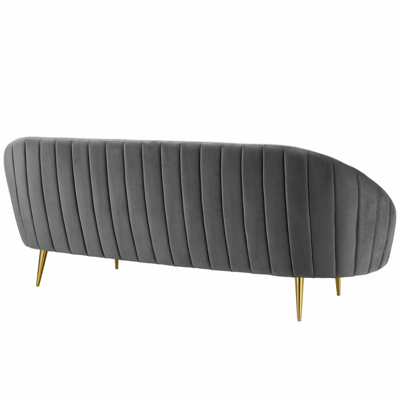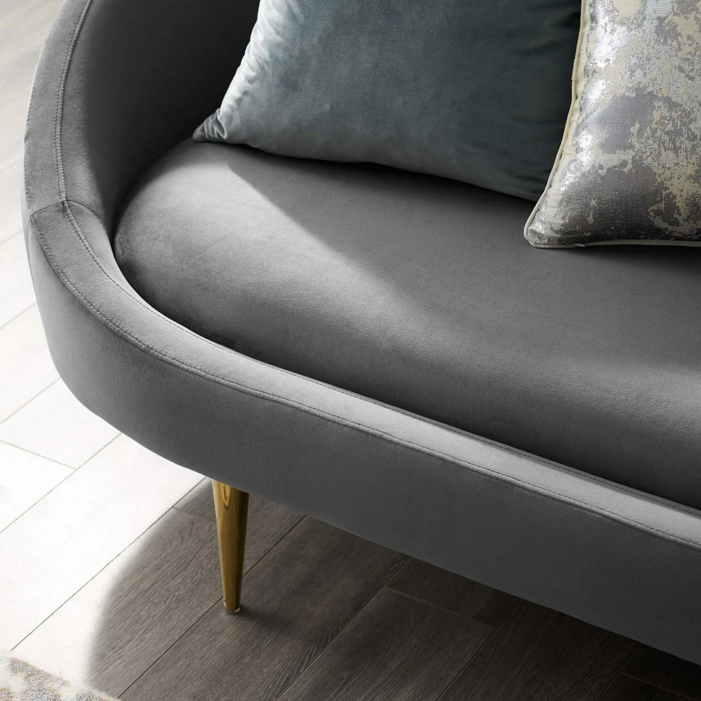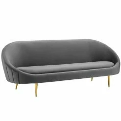 Update your interior design by looking back a few decades to the Modway Sublime Vertical Curve Back Performance Velvet Sofa. This sofa has a chic mid-century look with tapered pegs legs and a flared oval-shaped seat with curved sides. The frame is crafted from wood with stainless steel legs, finished in gold. Plump foam pads the frame and seat, topped by soft and durable performance polyester velvet. Choose among the available color options to best suit your sense of personality.