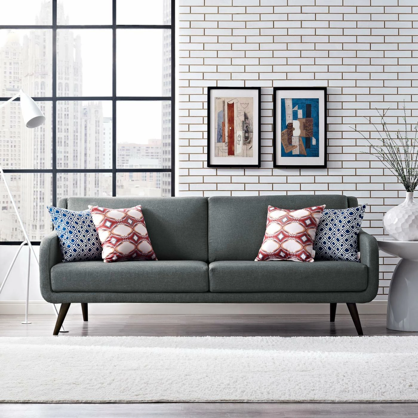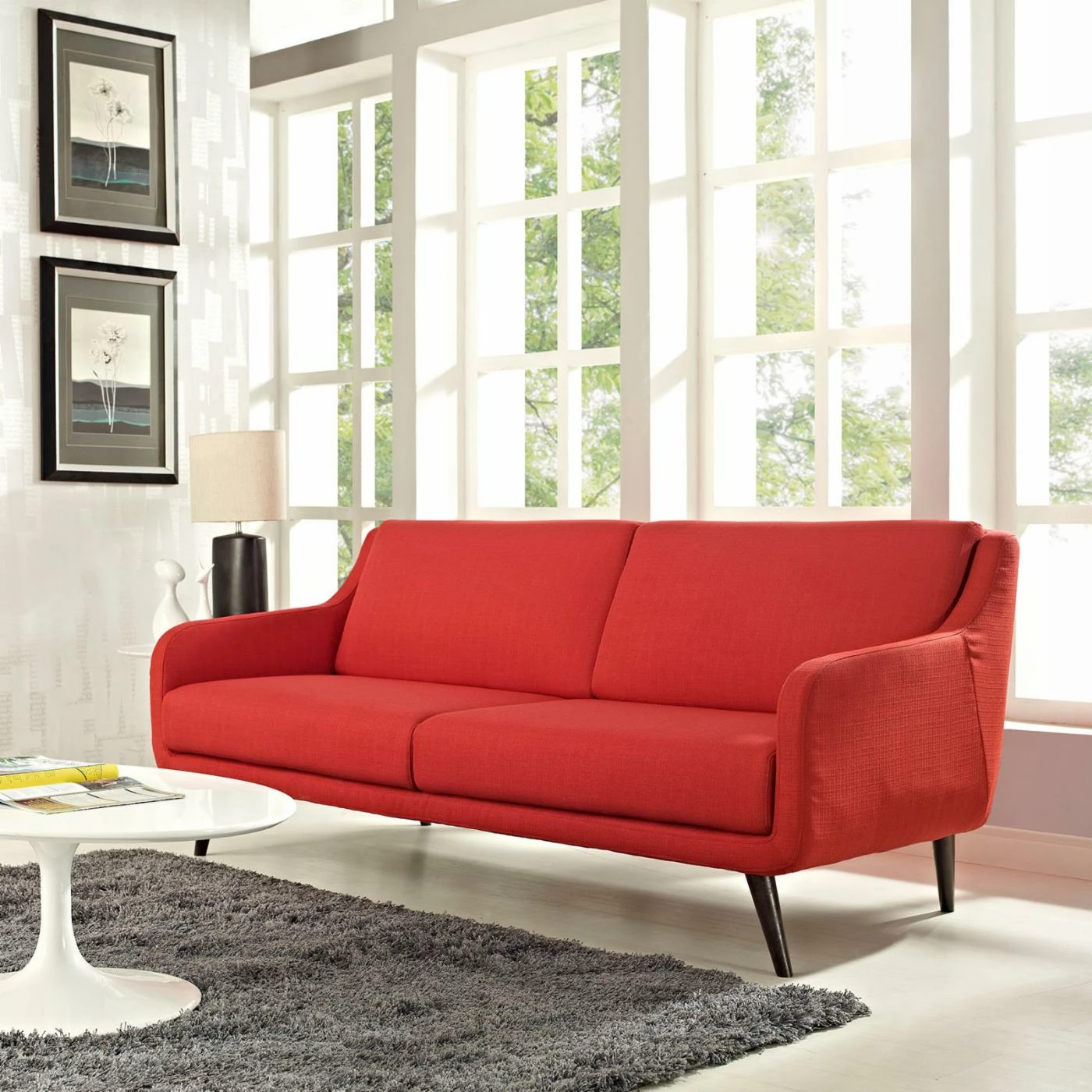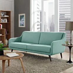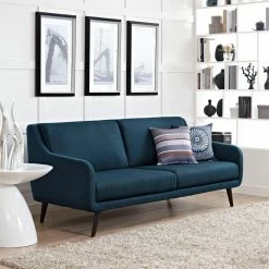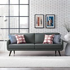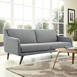 For a contemporary take on a retro classic, the Modway Verve Sofa pairs a sleek silhouette with mid-century legs. Dense foam padding and your choice of available polyester upholstery colors ensure this sofa is as comfortable as it is stylish. Flared rubberwood dowel legs taper neatly and feature an espresso stain.