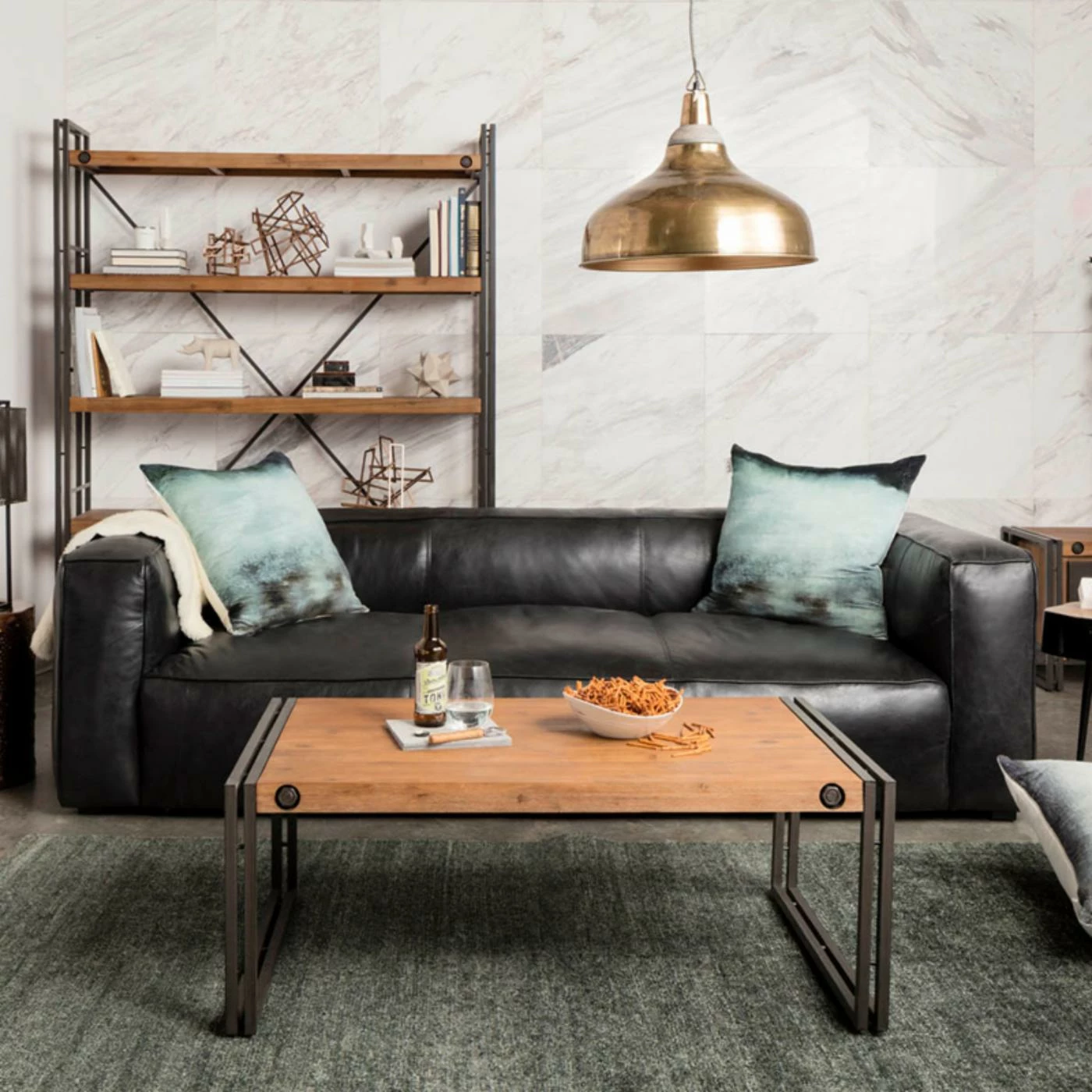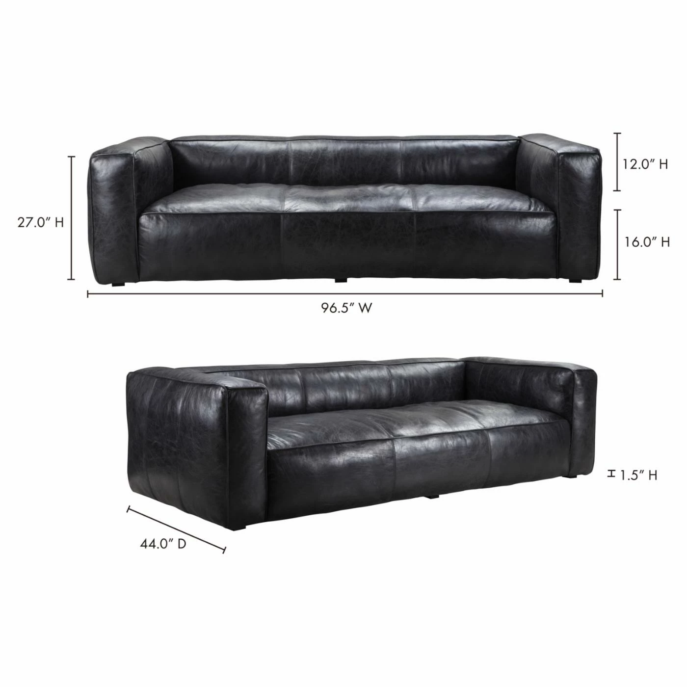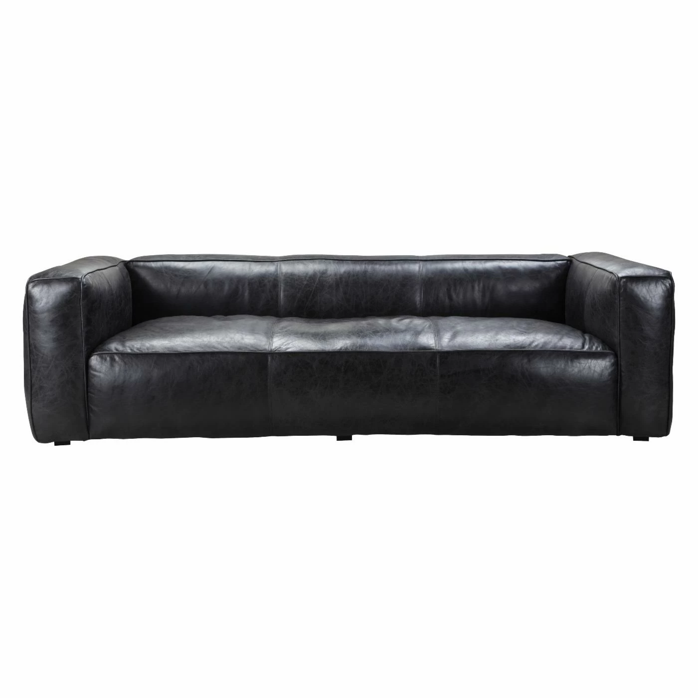 The Moes Home Collection Kirby Leather Sofa offers simple lines that enhance a variety of dΓ©cor settings. This sofa features a solid pine frame with top-grain leather upholstery. Its sleek look and low profile beckon you to sit back, lie down, and simply relax in style.