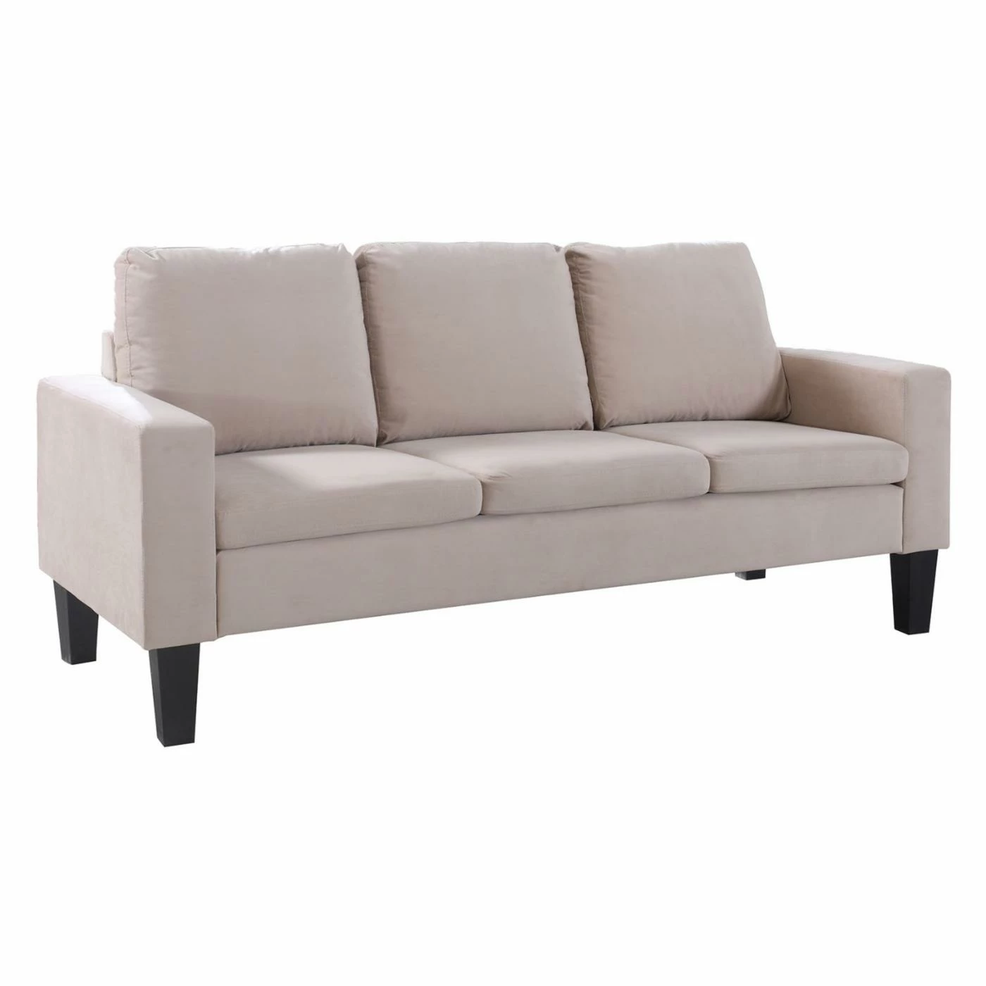 Update your apartment or home with the versatile and compact NH Designs 72013 Microfiber Sofa. The solid wood frame stands on four tapered, block legs crafted from wood and finished in black. It’s wrapped in high-density foam for comfortable seating. Sumptuous microfiber resists stains and stands up to frequent use.