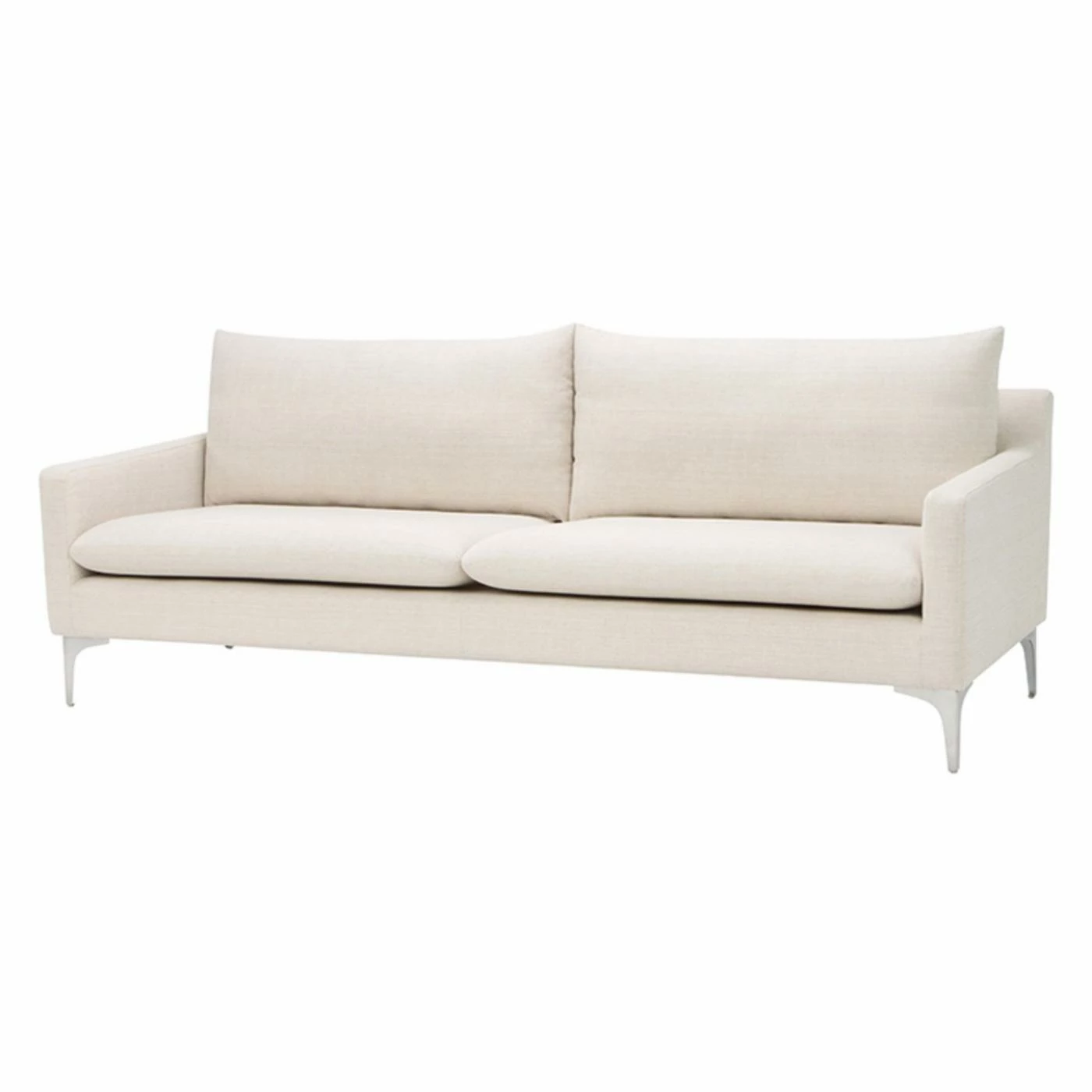 The Nuevo Anders Pillow Back Sofa boasts a sleek, modern silhouette with the comfort of foam-filled cushions and a soft yet supportive pillow back. This spacious full-length sofa has a simple, versatile design that is available in a variety of colors to perfectly suit your existing dΓ©cor. With the charm of the silver-finished metal legs and the classic contemporary look, this sofa is ideal for entertaining and is sure to be at home in your living area or family room.