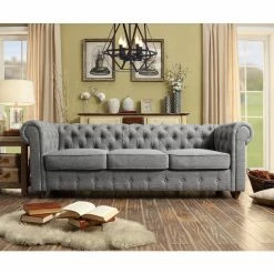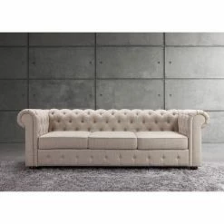 Achieve a traditional look for your living room or den with the Rosevera Quitaque Tufted Chesterfield Sofa. This elegant sofa features tight button-tufted details and rolled arms. Its cushions are generously filled for comfort and lasting support. Choose from available upholstery colors to complement your dΓ©cor.