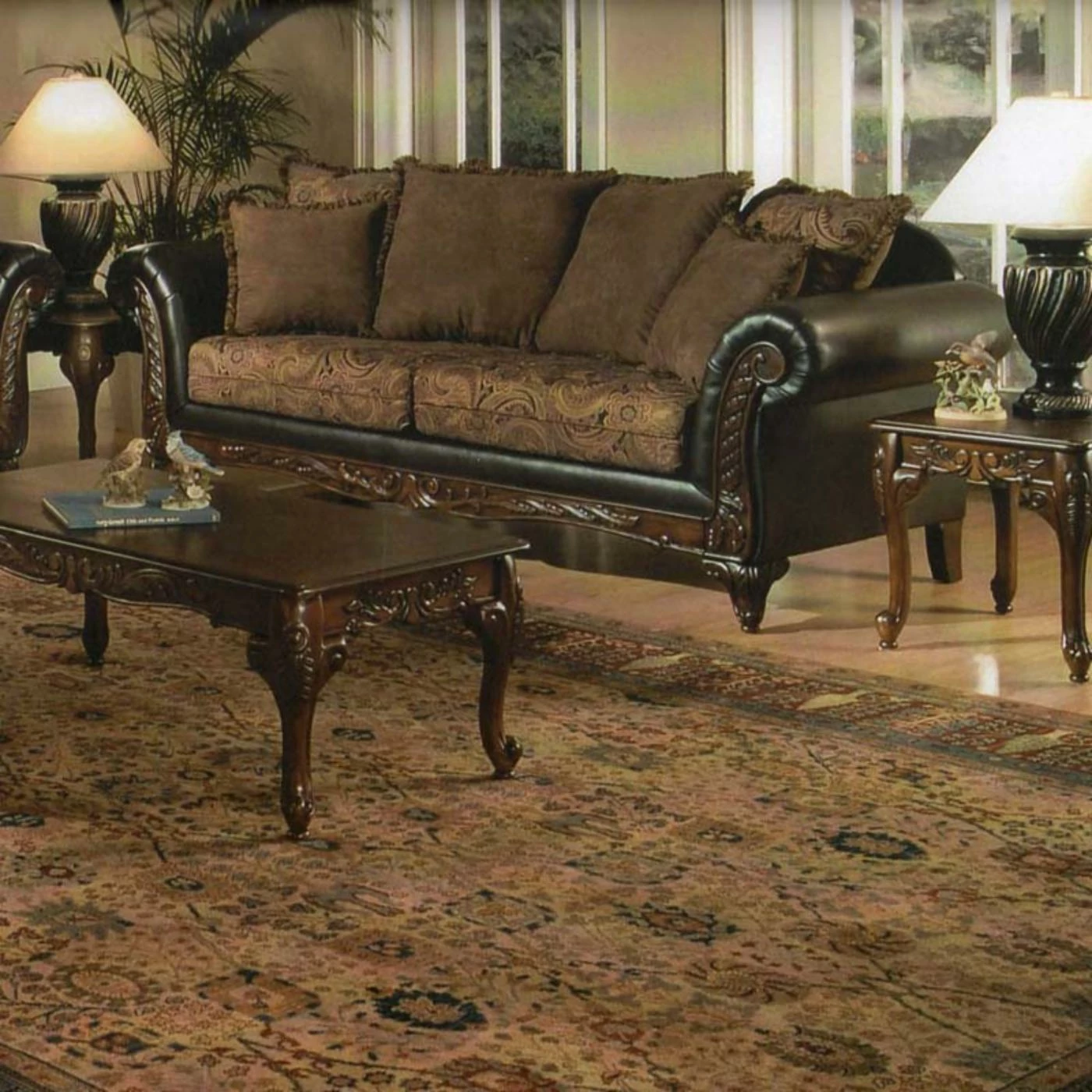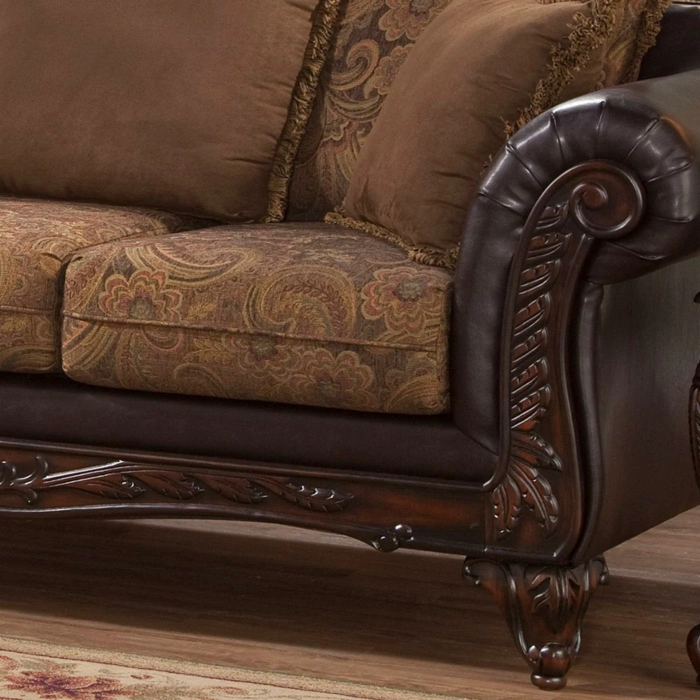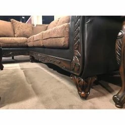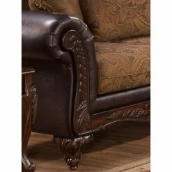 Youโll fall in love with the elegant and classic style of the Roundhill Furniture San Marino 2-Tone Chocolate Microfiber Sofa. A gorgeous choice for your living room, this sofa features two-tone coffee bean brown bi-cast fabric on the framework and floral fabric cushioning to create a look that complements any dรฉcor. The intricate detailing on the carved wood face trim and legs elevates the design of this sofa into a truly stunning piece. Comfortable and luxurious, it boasts 1.8-density foam cushions and a hardwood frame thatโll maintain its integrity over the years.